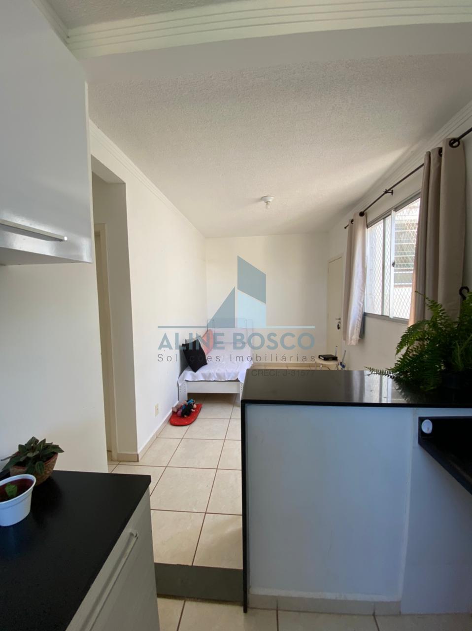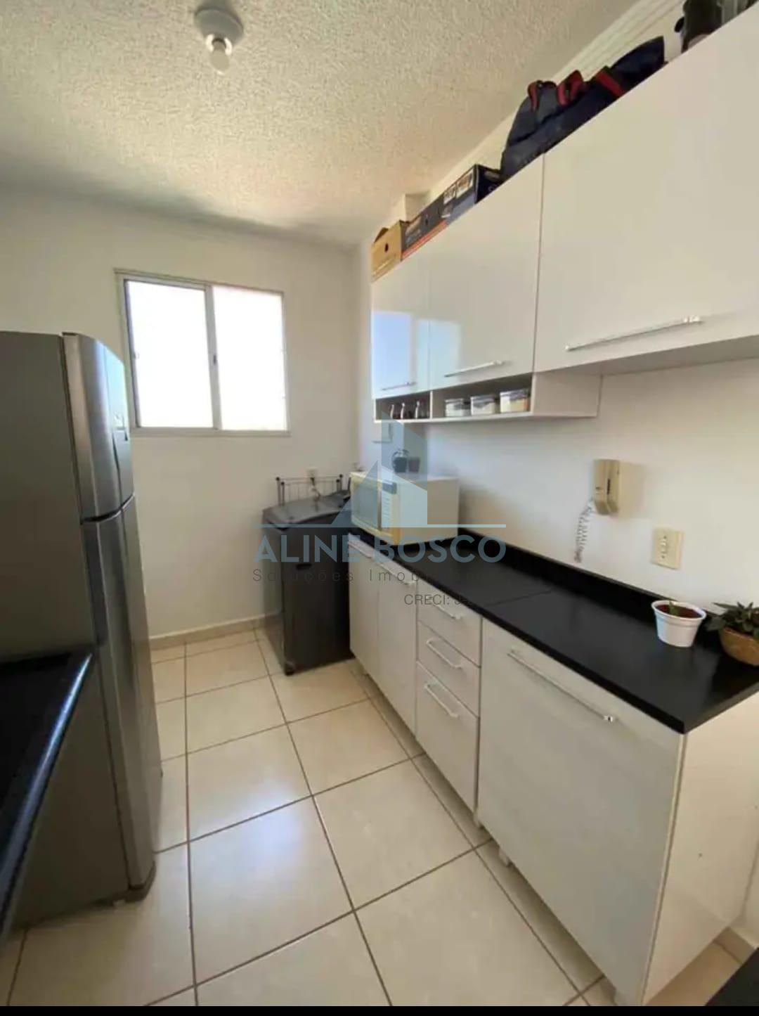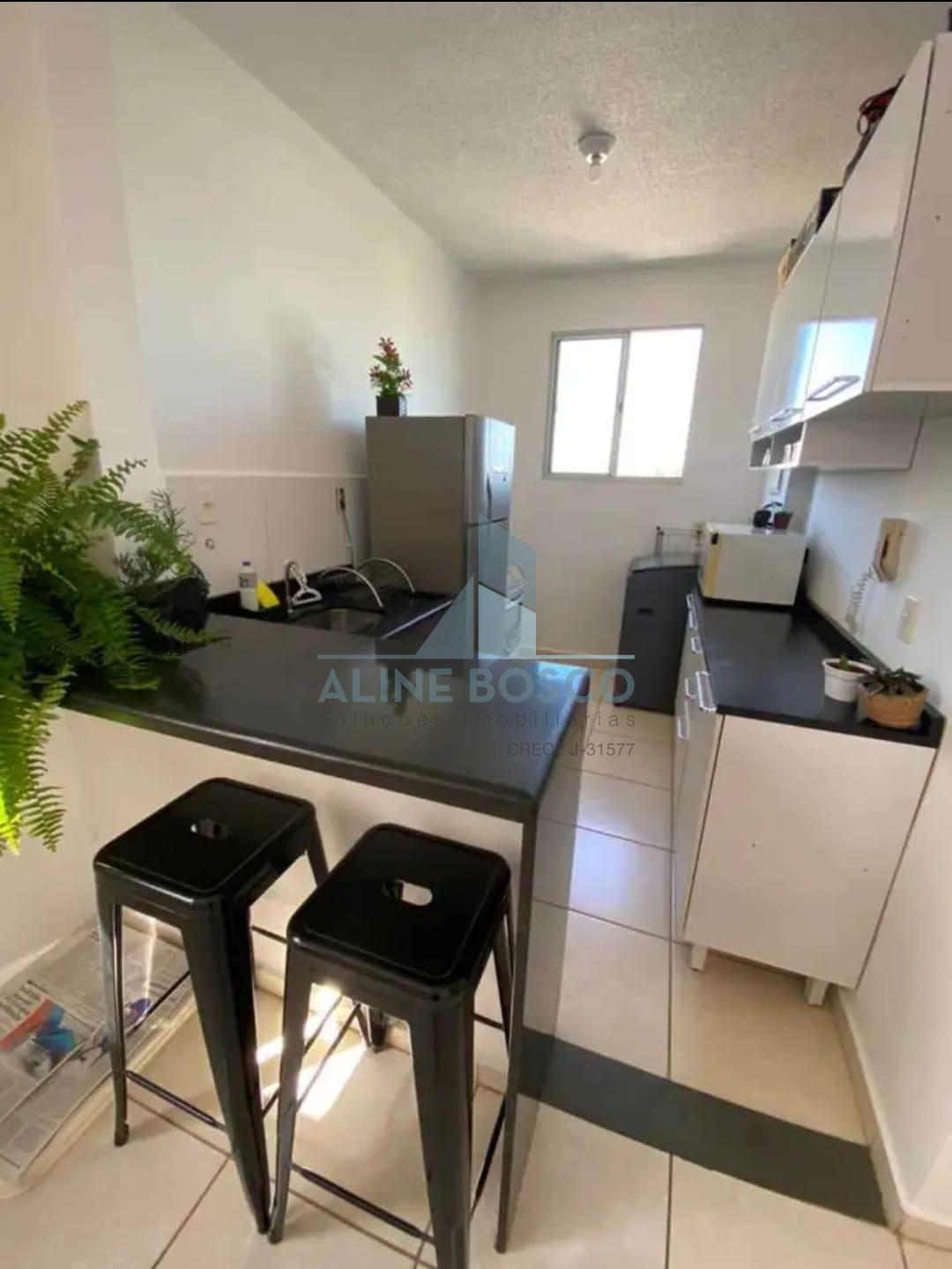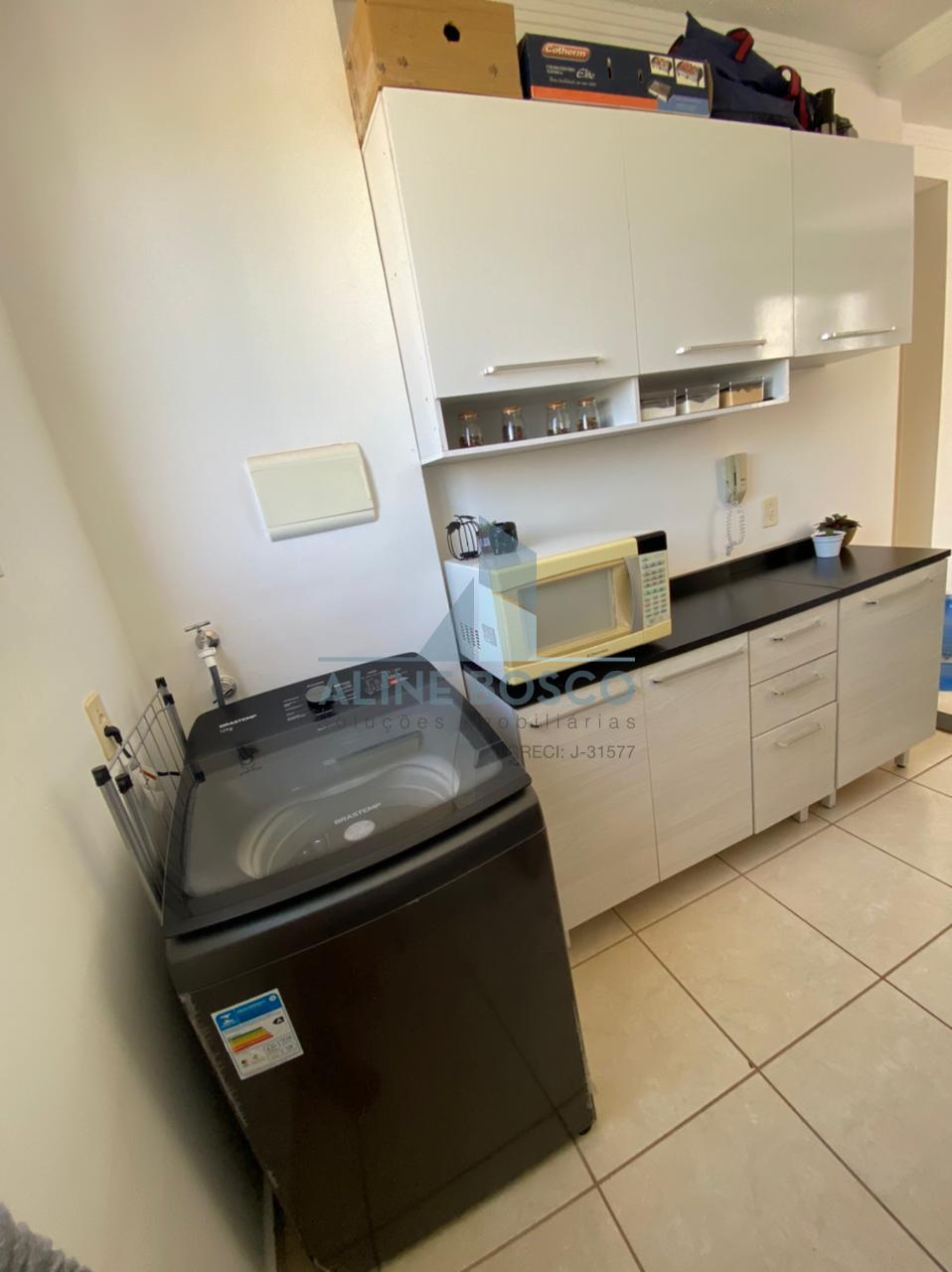 Apartamento Parque Álamo, com dois dormitórios, banheiro social, sala dois ambientes, cozinha americana com balcão em granito e lavanderia, uma vaga de garagem coberta.