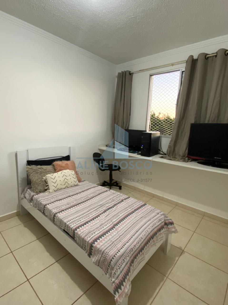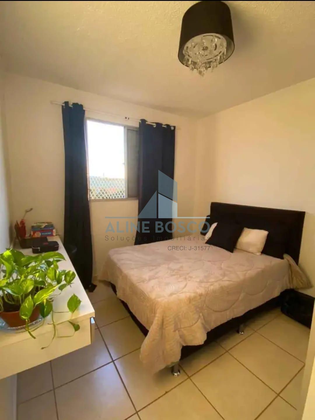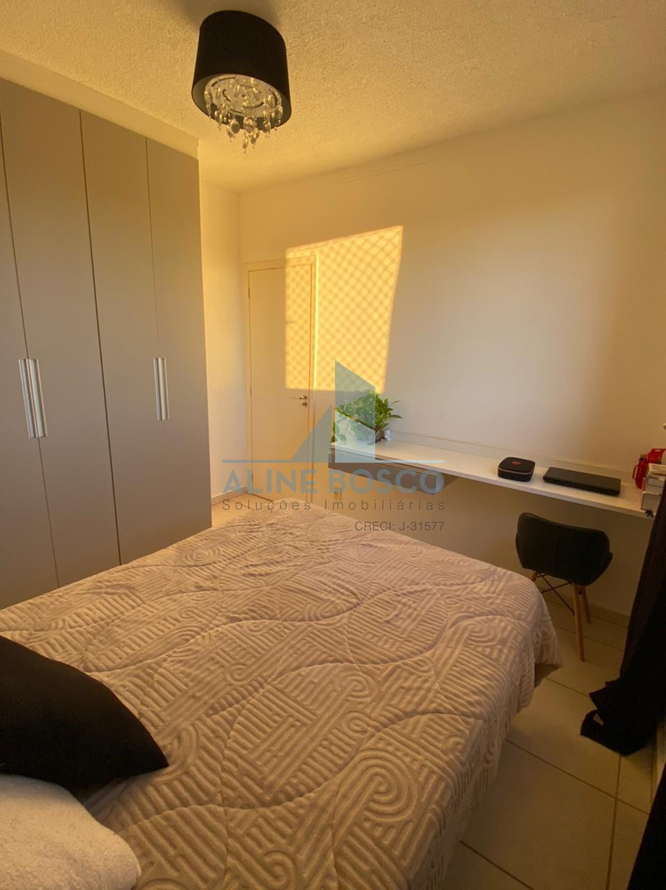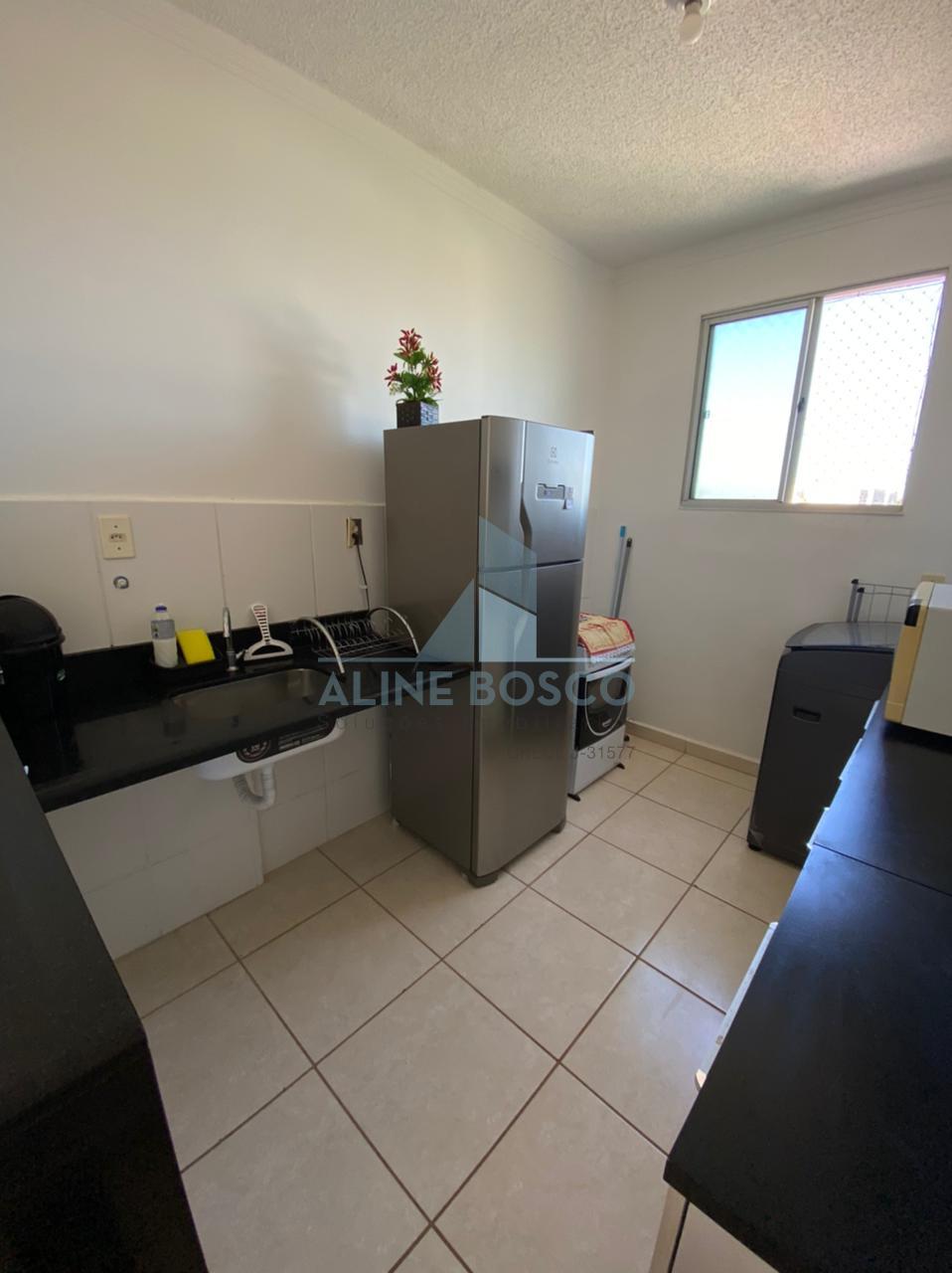 Apartamento Parque Álamo, com dois dormitórios, banheiro social, sala dois ambientes, cozinha americana com balcão em granito e lavanderia, uma vaga de garagem coberta.
