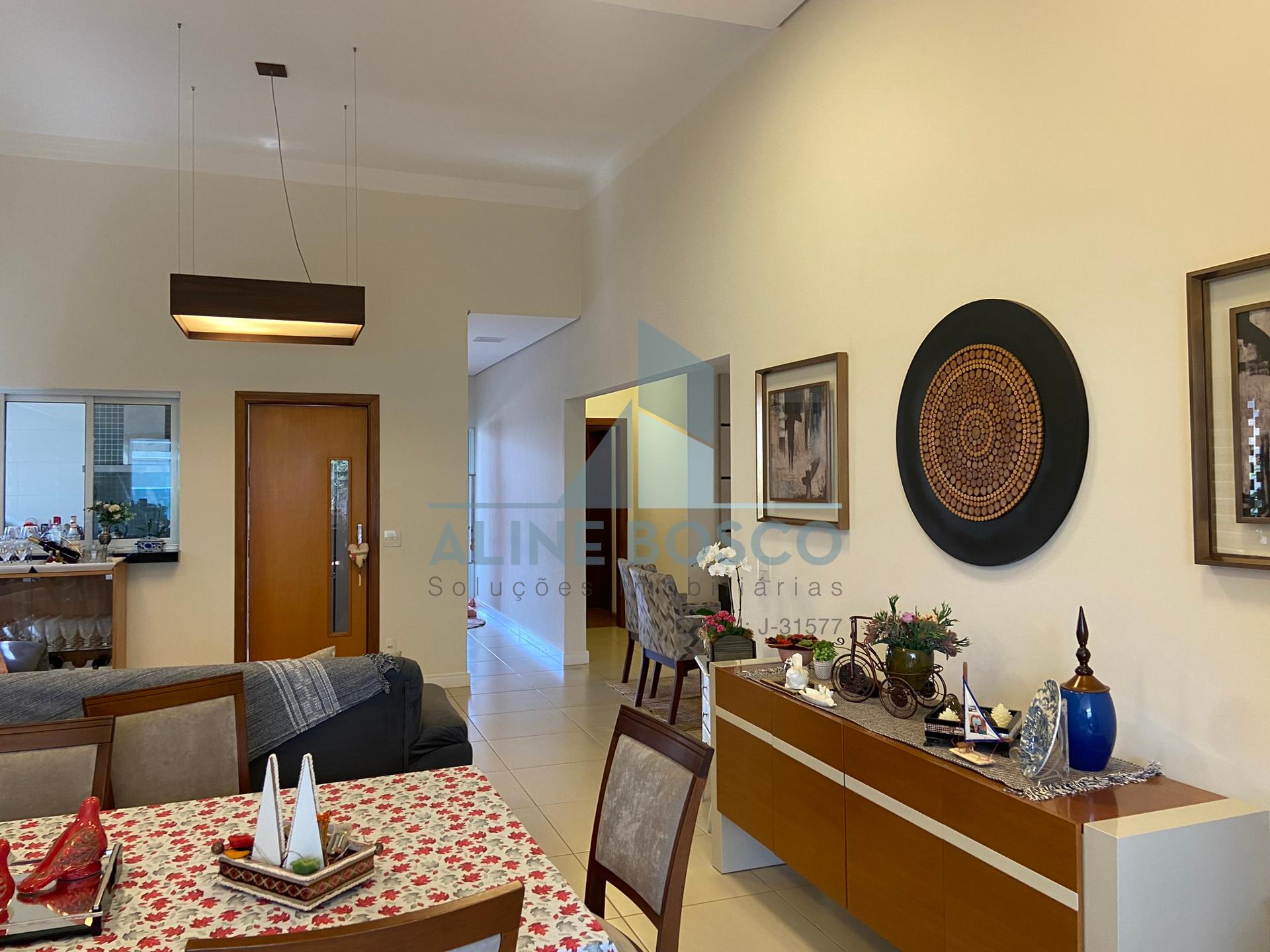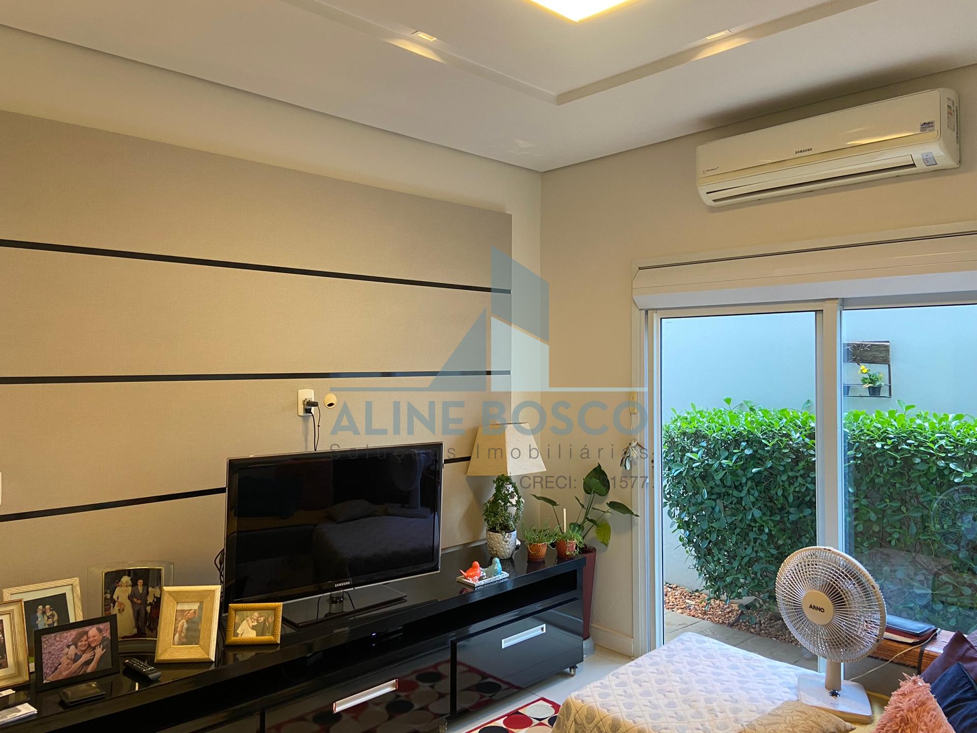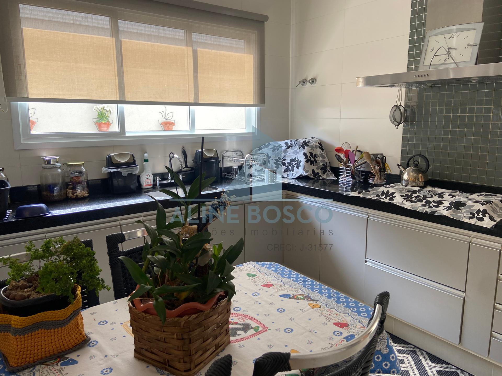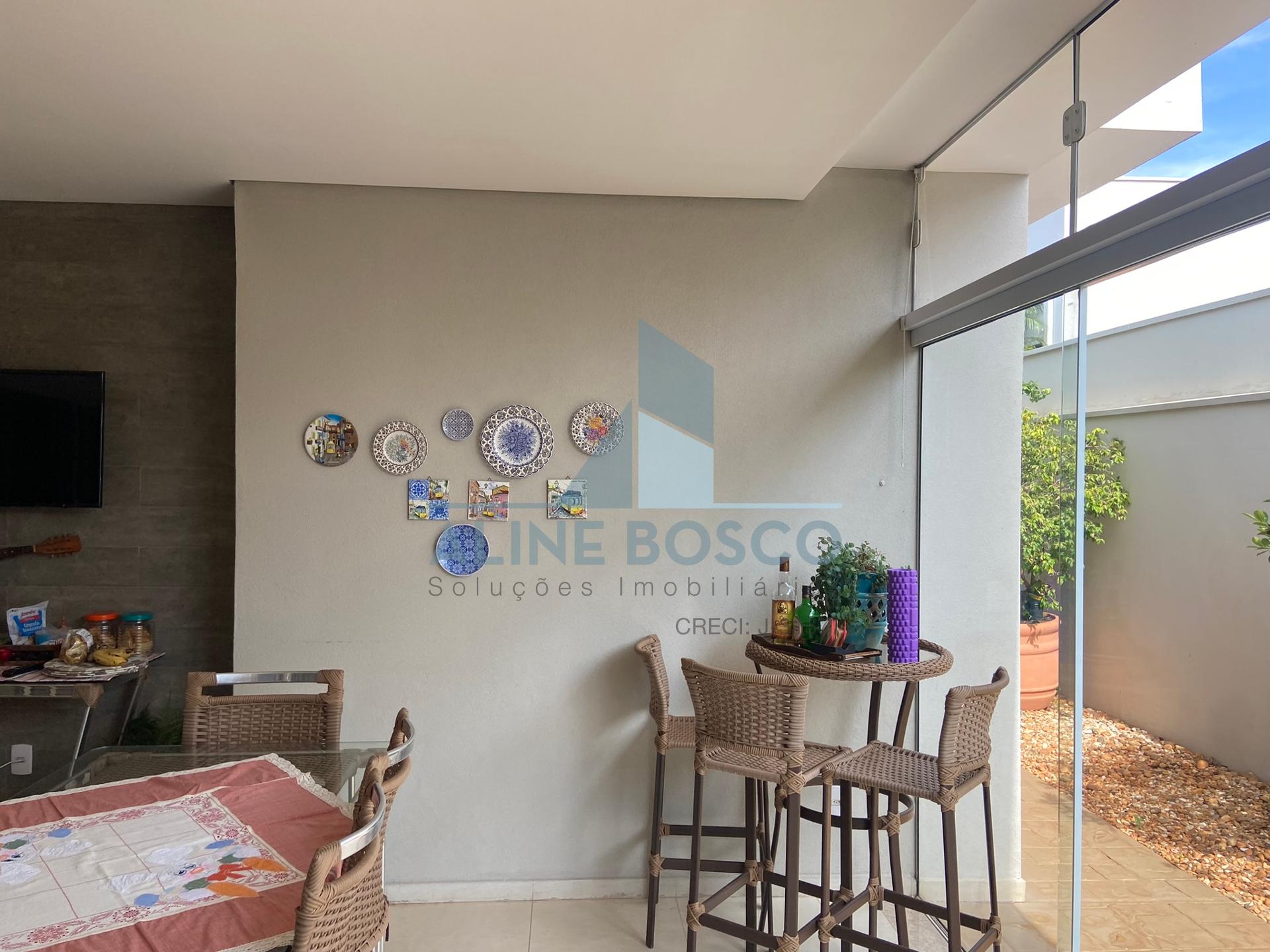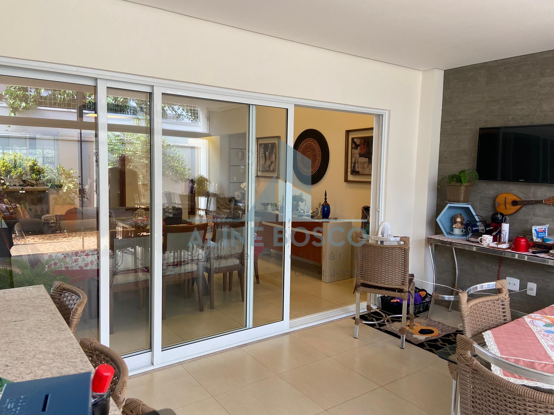 Casa com 04 suítes, sala para 02 ambientes (jantar/estar), sala de TV, lavabo, cozinha, área de serviço, varanda gourmet com churrasqueira. Completa de armários, com aparelhos de ar condicionado nas salas e suítes, esquadrias em alumínio. Laminado de madeira nos dormitórios, demais dependências em porcelanato. Aquecimento solar nos banheiros e cozinha. Garagem ampla coberta para 2 carros.