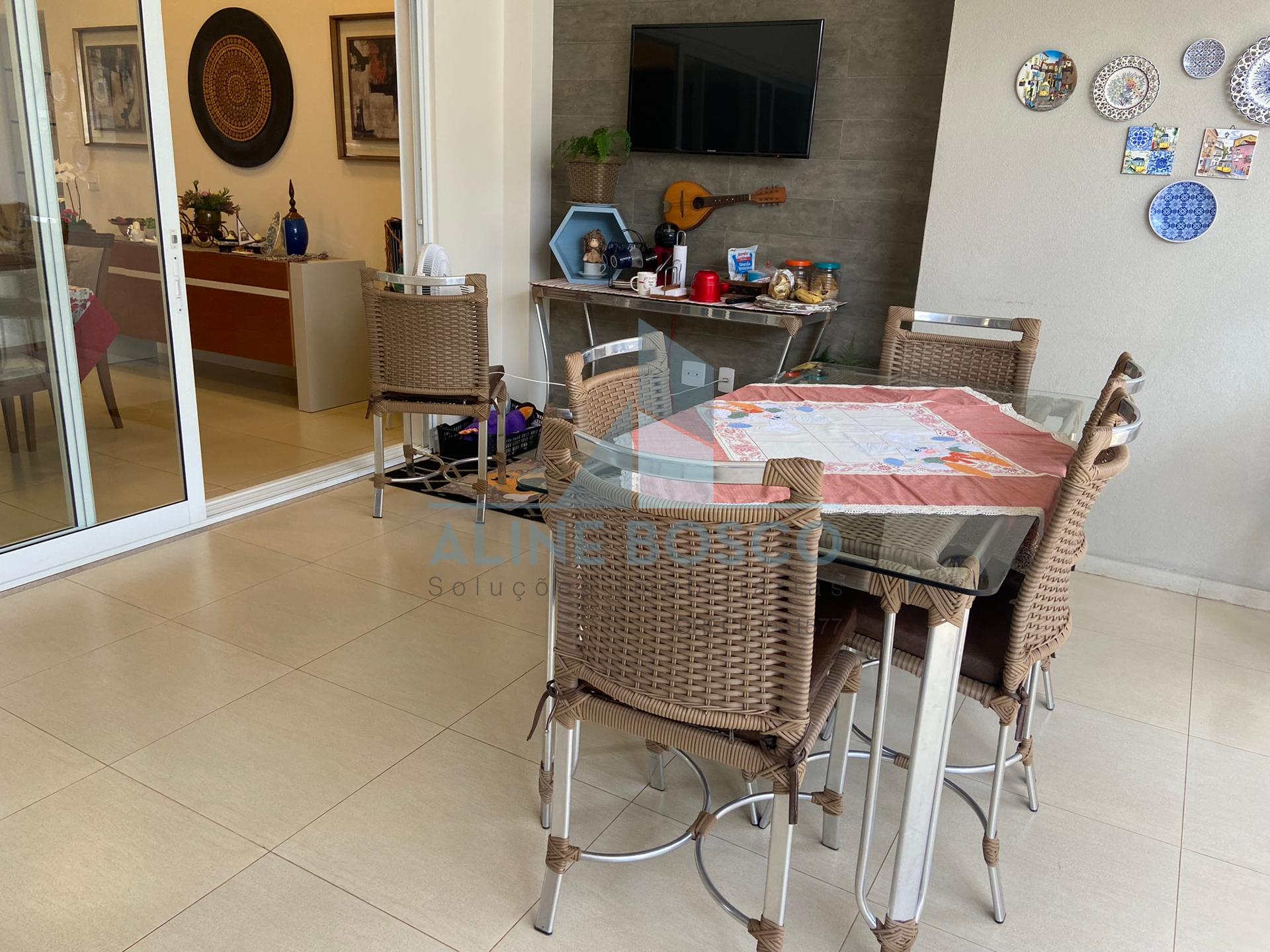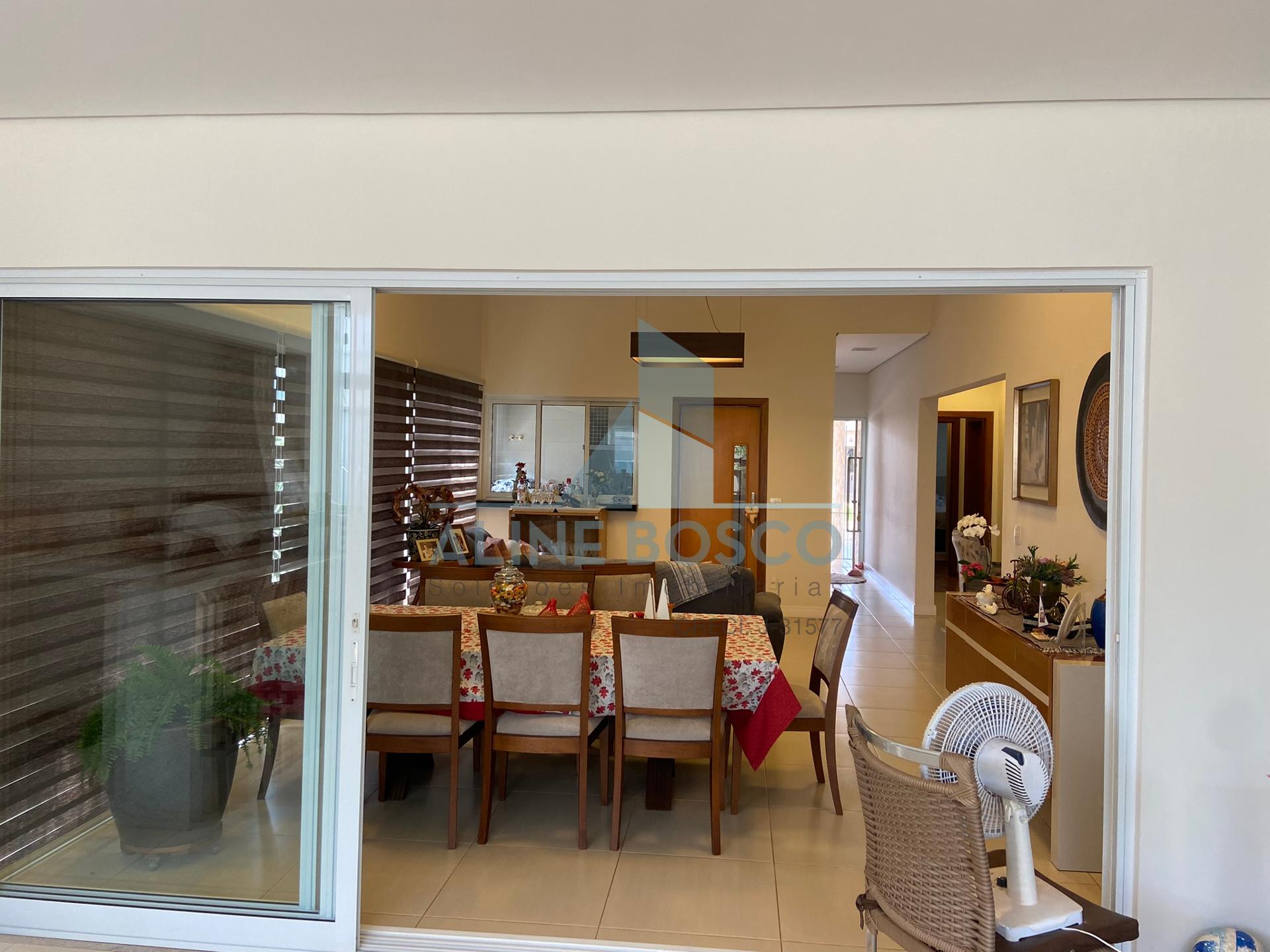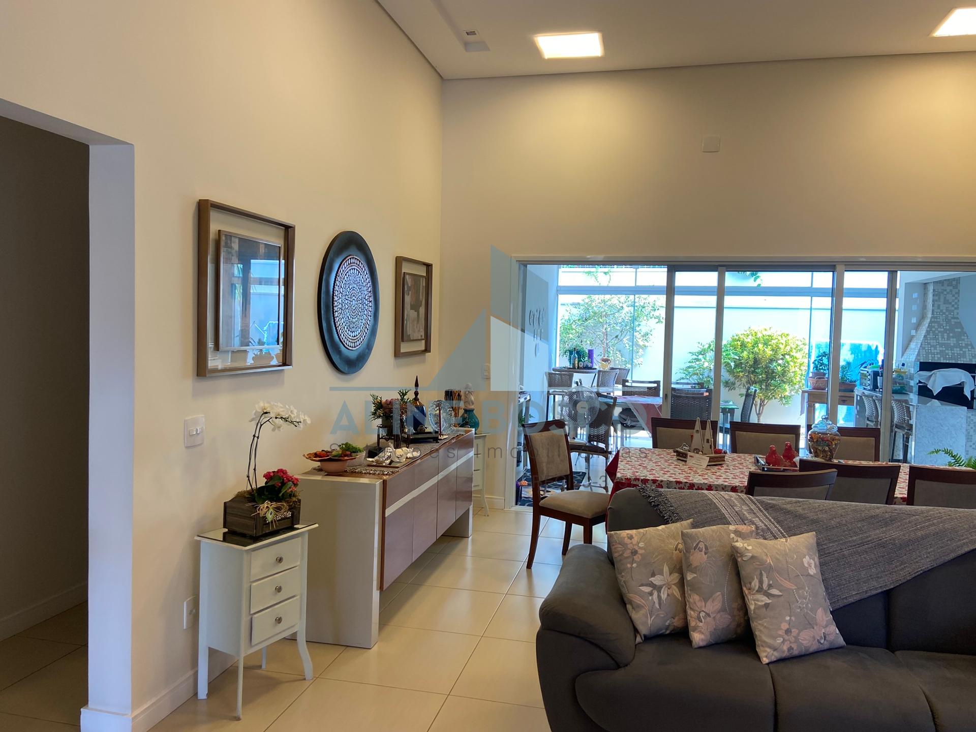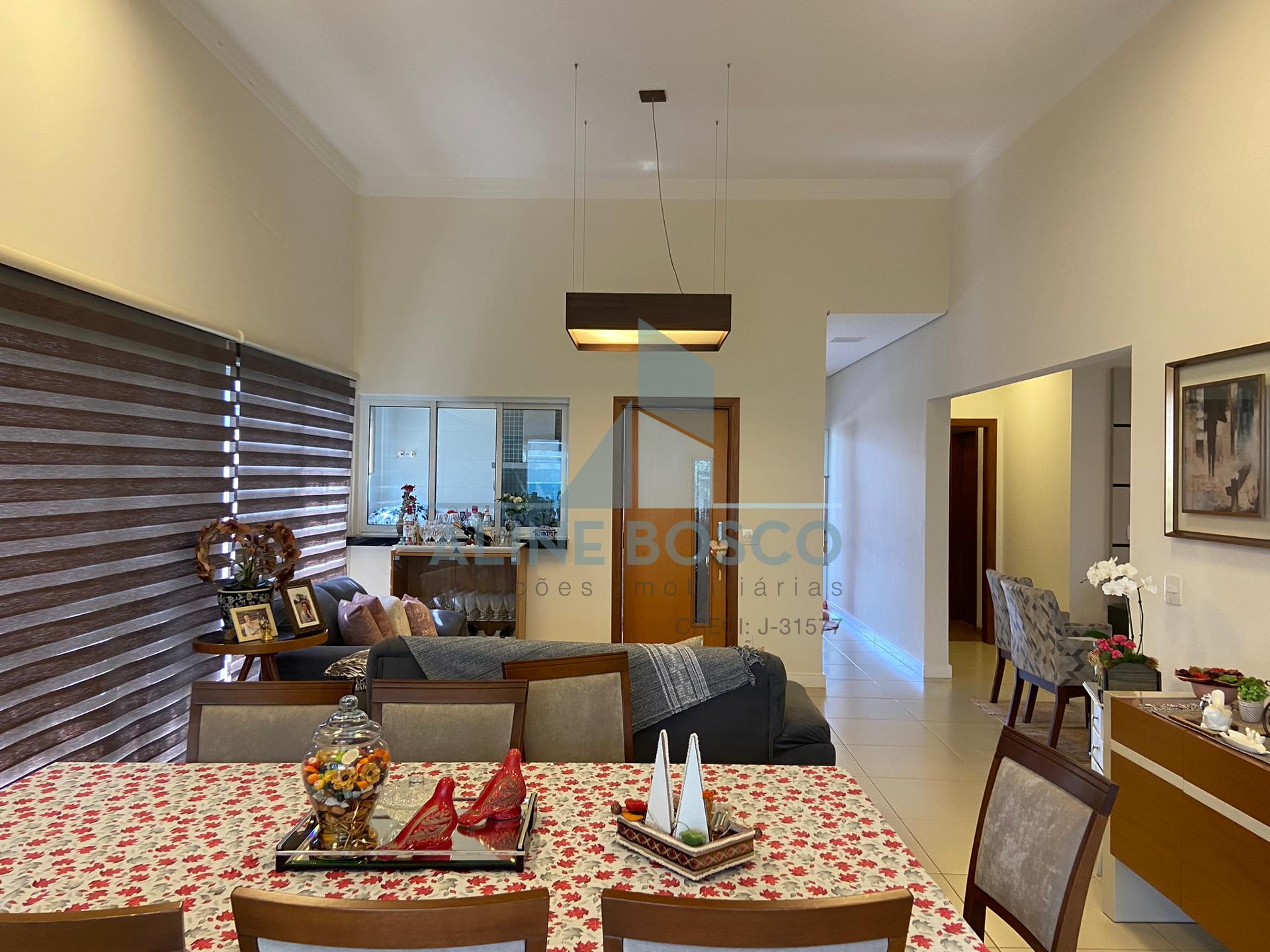 Casa com 04 suítes, sala para 02 ambientes (jantar/estar), sala de TV, lavabo, cozinha, área de serviço, varanda gourmet com churrasqueira. Completa de armários, com aparelhos de ar condicionado nas salas e suítes, esquadrias em alumínio. Laminado de madeira nos dormitórios, demais dependências em porcelanato. Aquecimento solar nos banheiros e cozinha. Garagem ampla coberta para 2 carros.