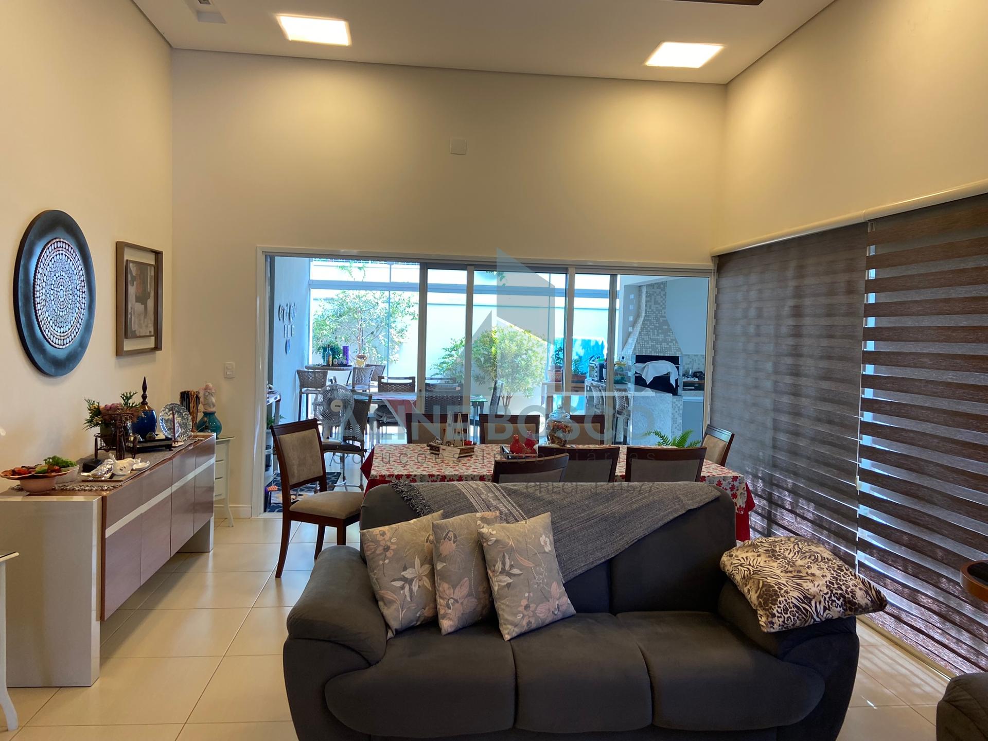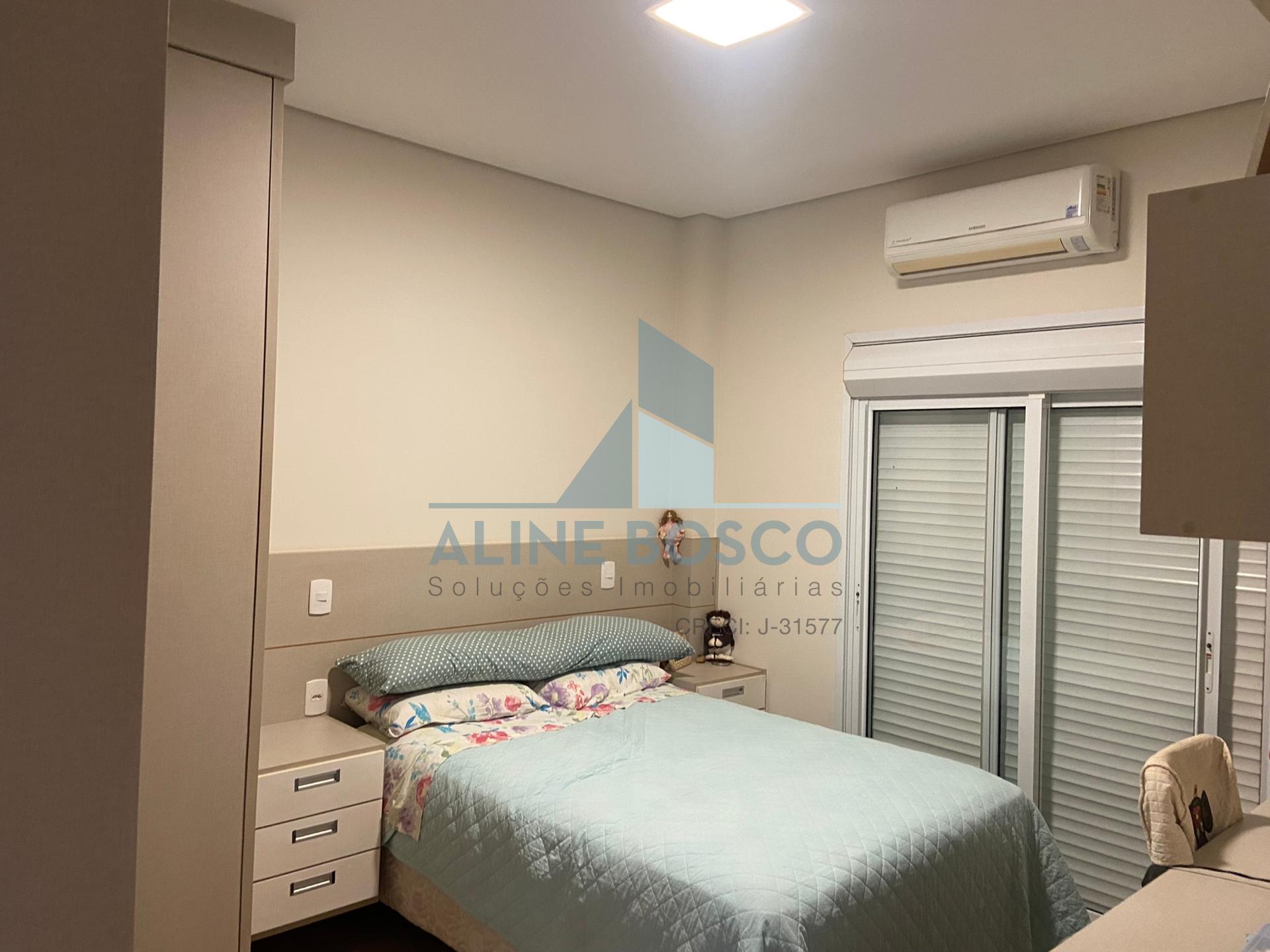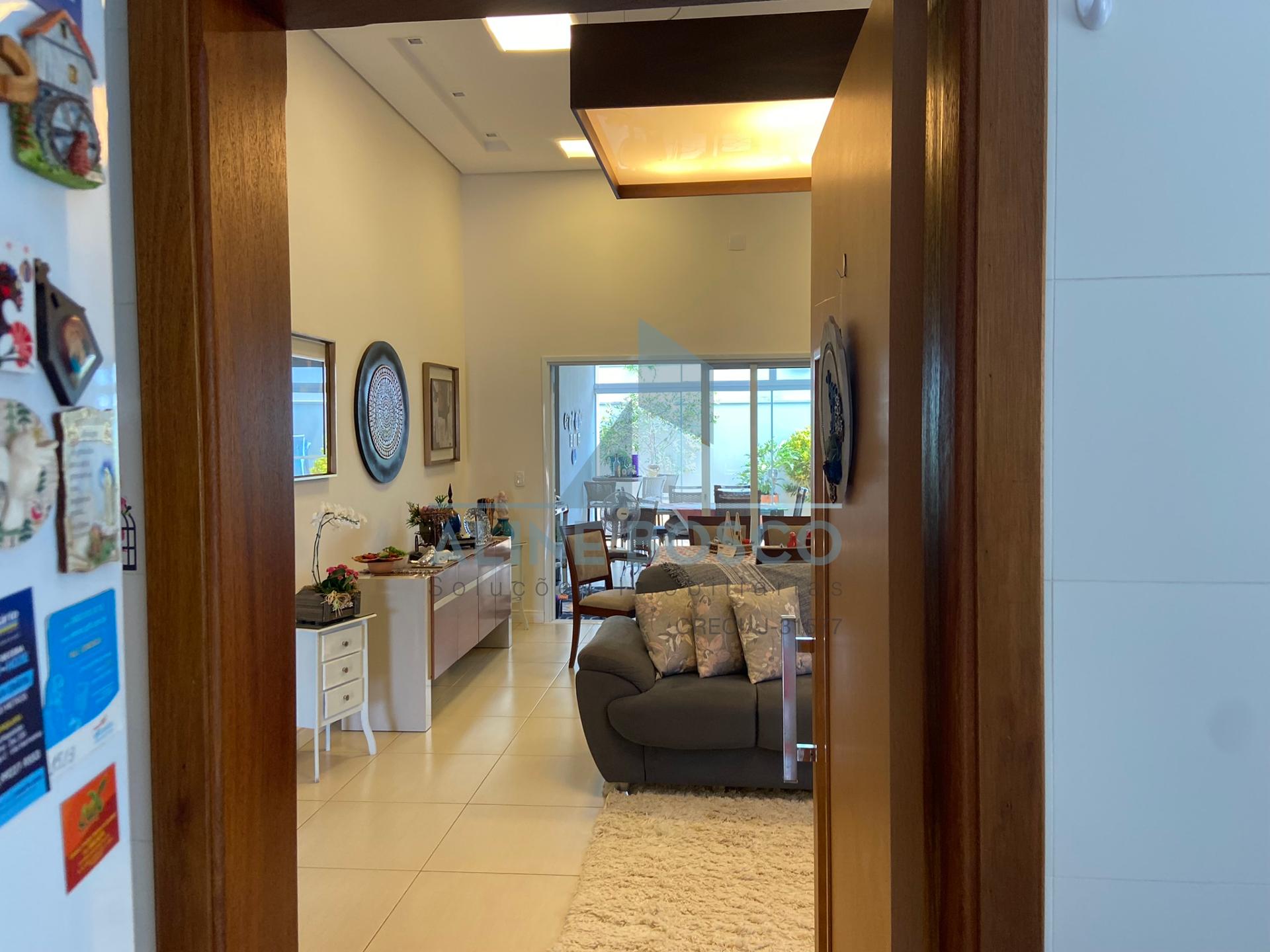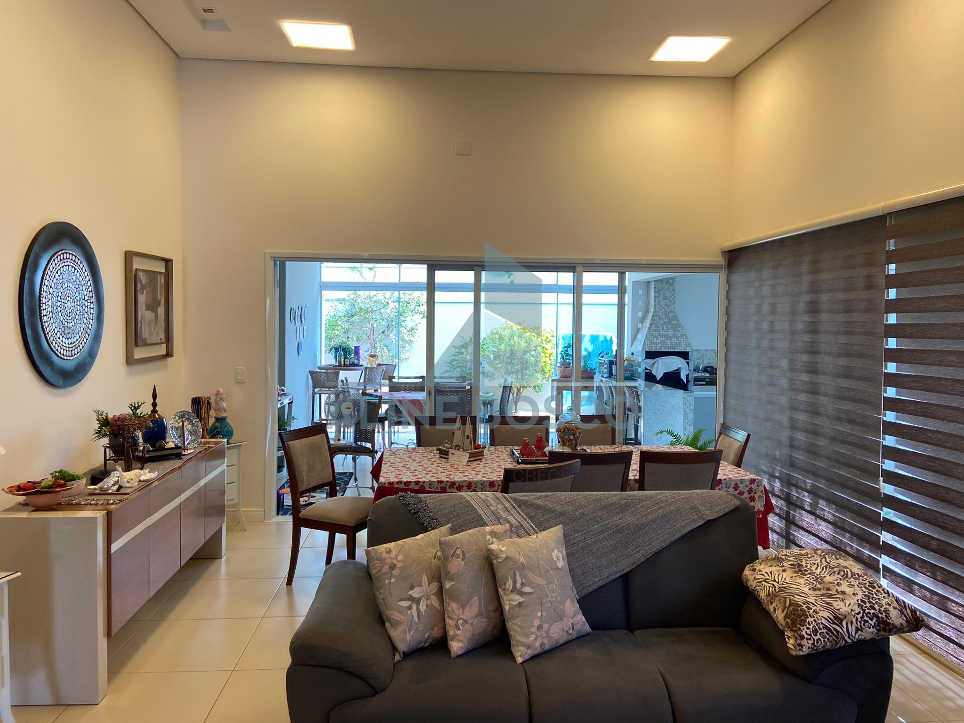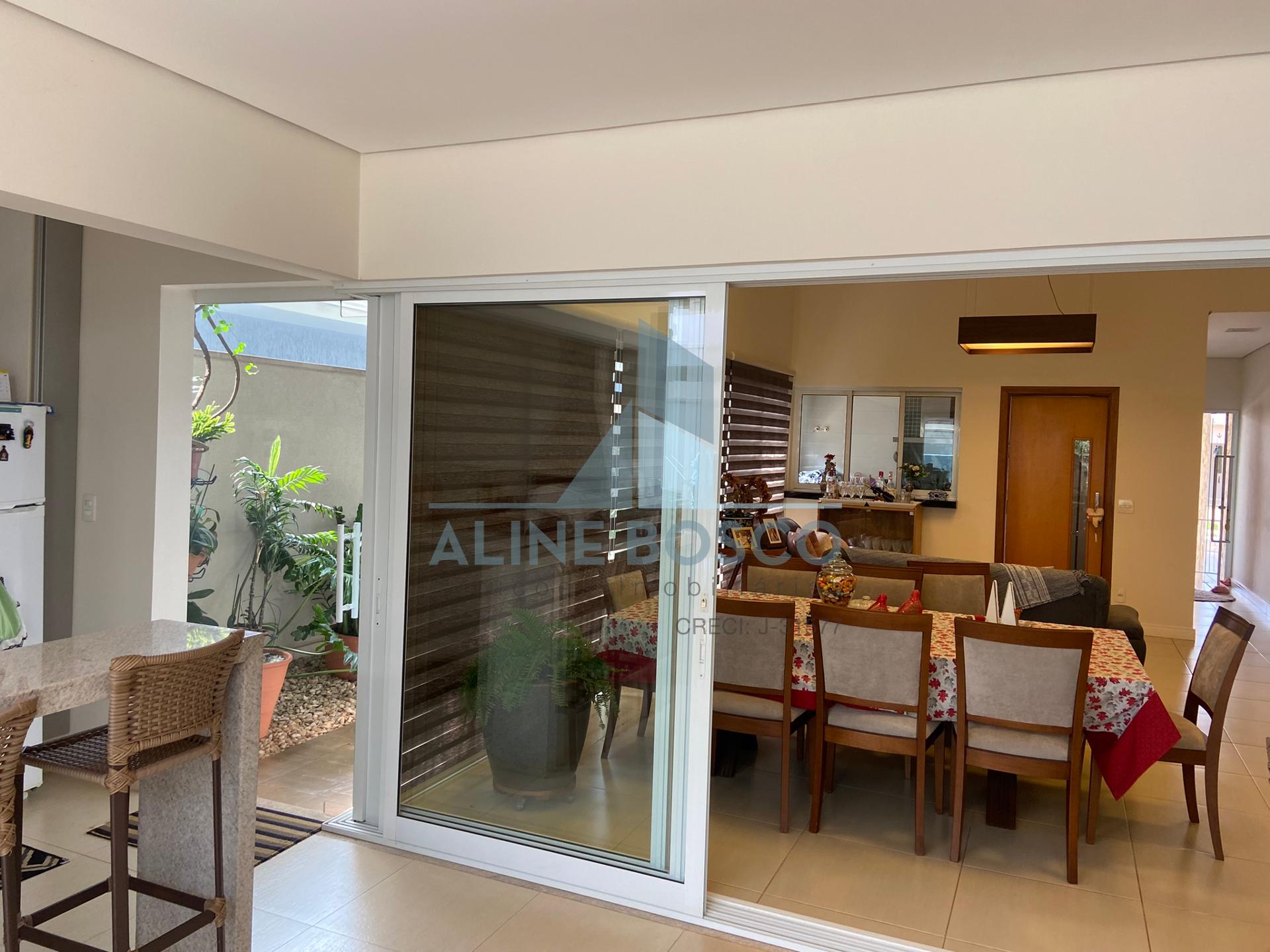 Casa com 04 suítes, sala para 02 ambientes (jantar/estar), sala de TV, lavabo, cozinha, área de serviço, varanda gourmet com churrasqueira. Completa de armários, com aparelhos de ar condicionado nas salas e suítes, esquadrias em alumínio. Laminado de madeira nos dormitórios, demais dependências em porcelanato. Aquecimento solar nos banheiros e cozinha. Garagem ampla coberta para 2 carros.
