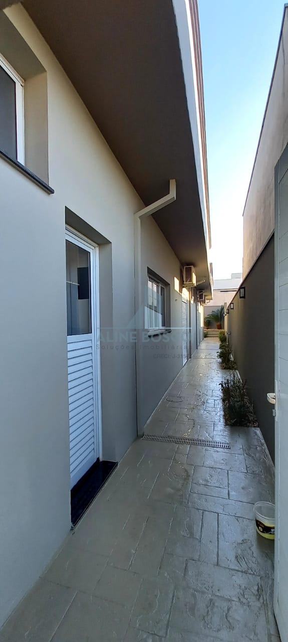 Casa térrea com 03 suítes, sala para 02 ambientes (jantar/estar), lavabo, varanda gourmet com churrasqueira, cozinha, área de serviço. Completa de armários e aparelhos de ar condicionado