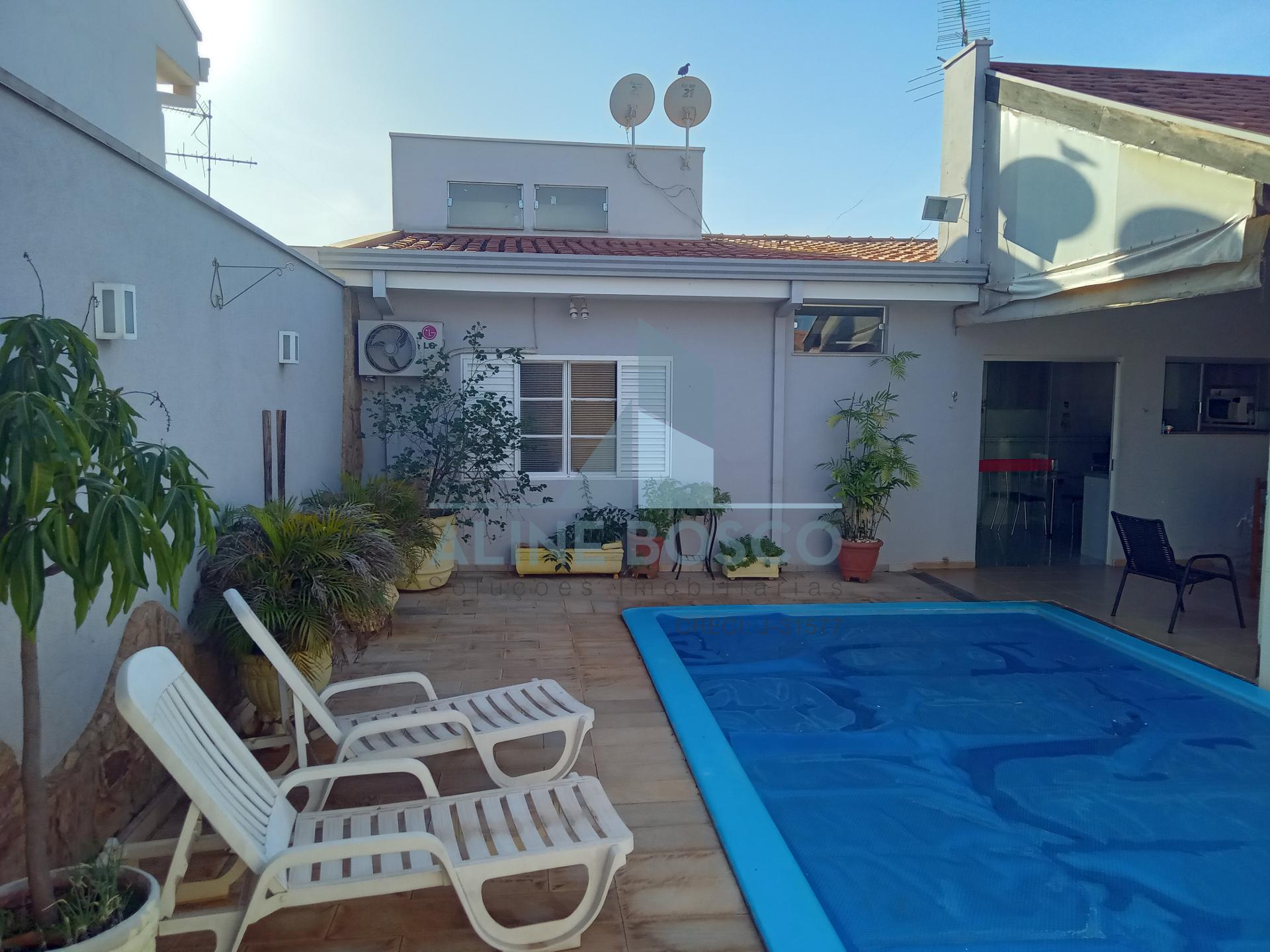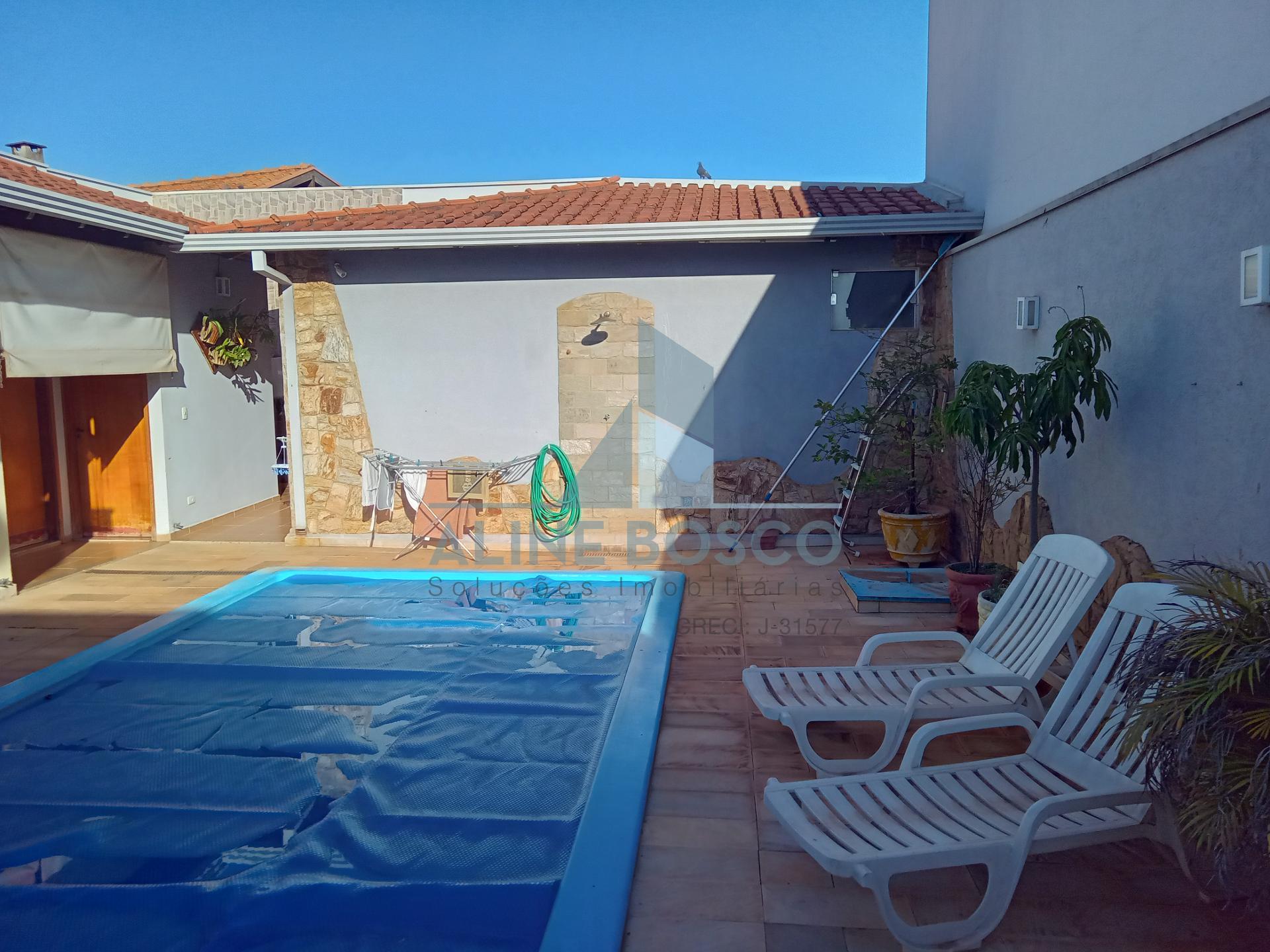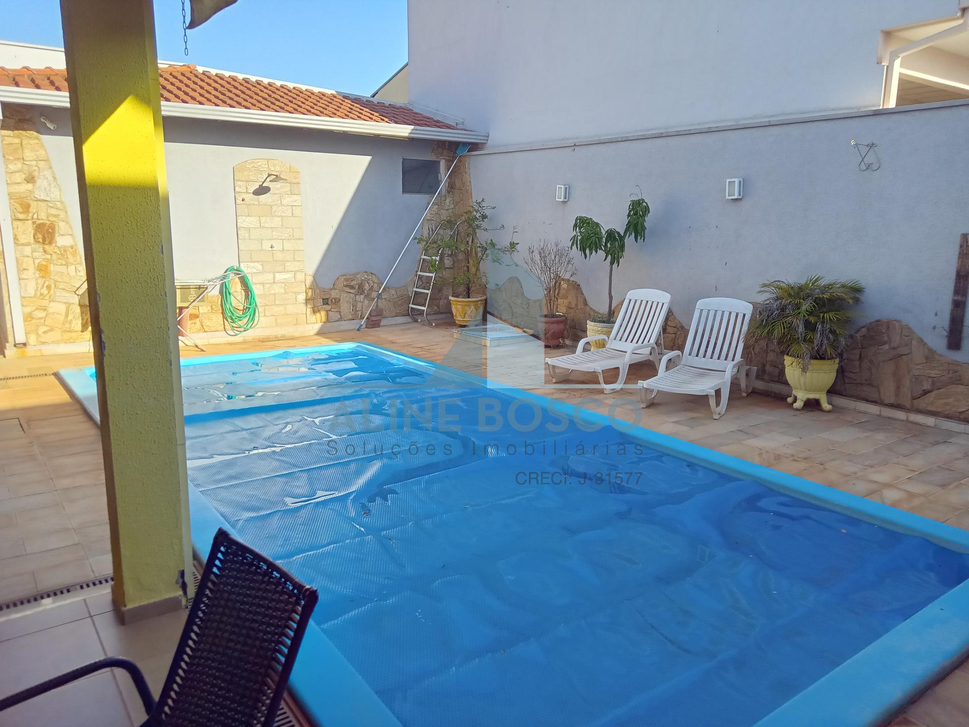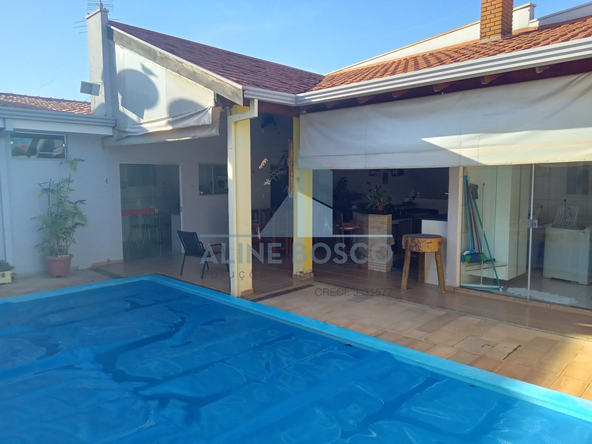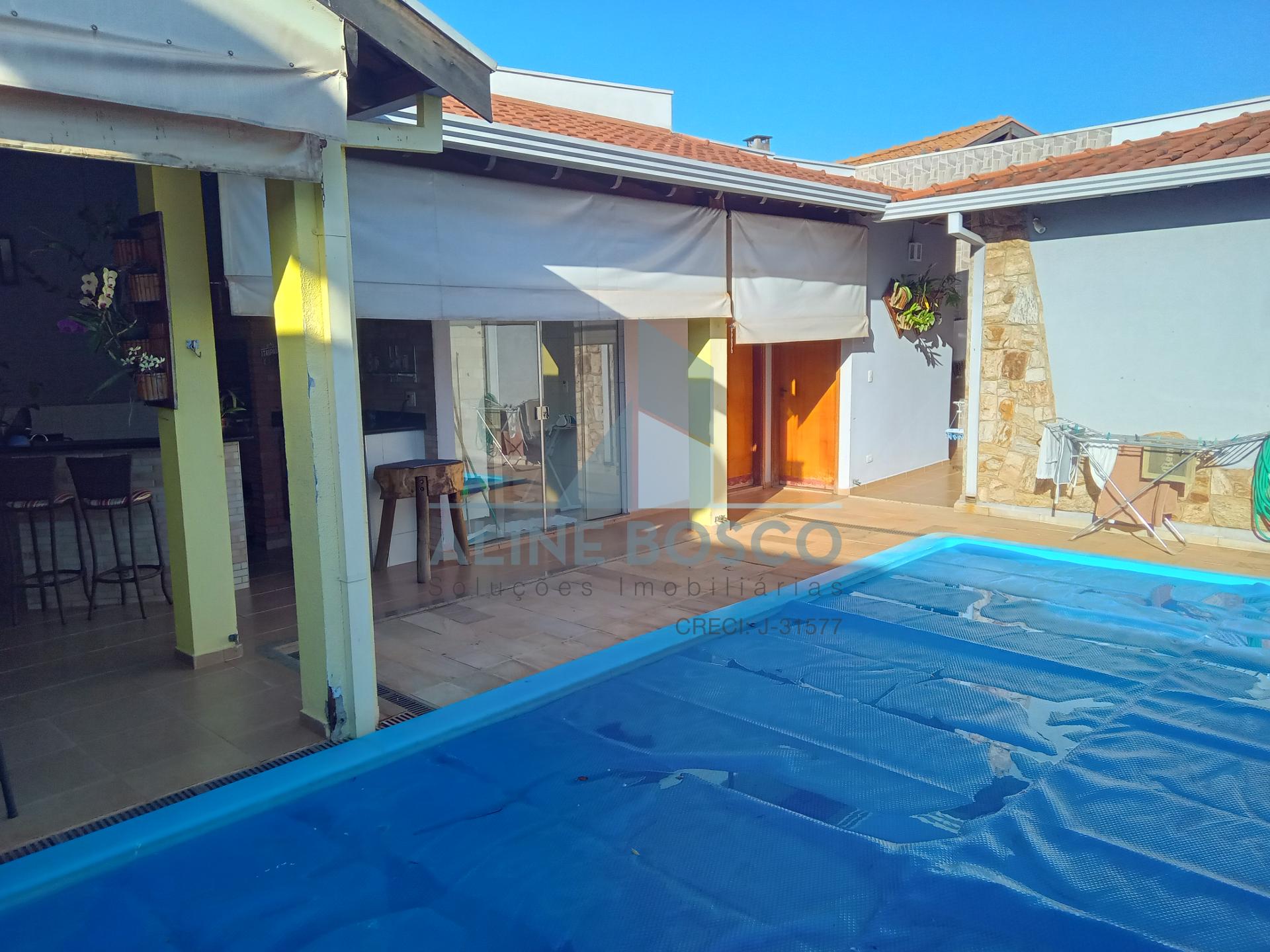 Casa a venda com 3 dormitórios sendo 1 suíte completa de armários, ar condicionado, 1 banheiro social, 1 escritório, sala ampla integrada, cozinha planejada, 4 vagas de garagem cobertas com portão eletrônico, área de churrasco com armários e toldo, piscina aquecida, edicula com banheiro, área de serviço com armários, 1 banheiro área externa.