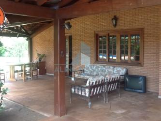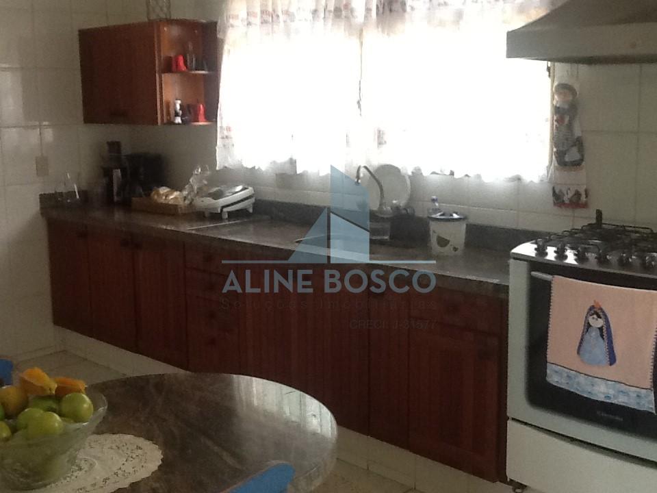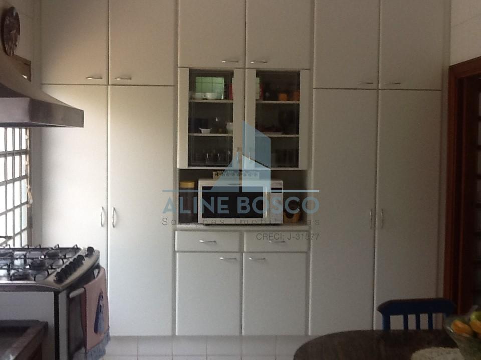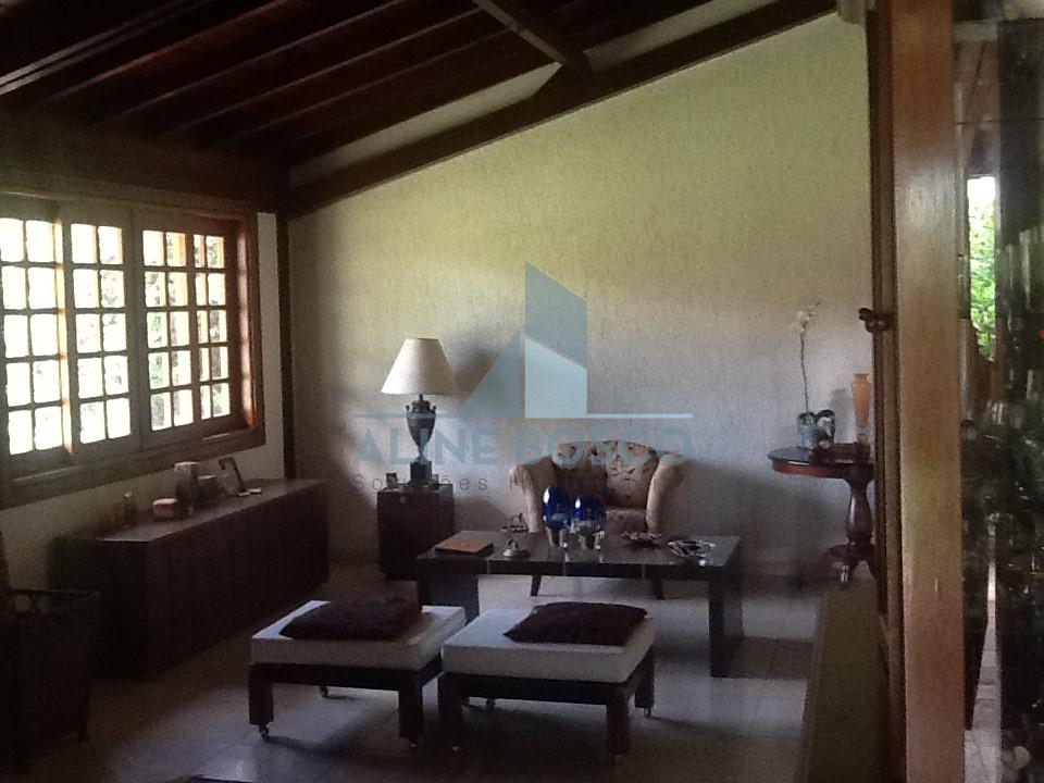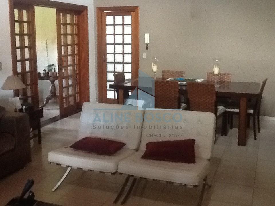Casa com 3 suites, sala de visita, sala de estar e jantar integradas voltadas para uma bela varanda com pé direito duplo, lavabo, cozinha, área de serviço com quarto e banheiro, varanda gourmet com churrasqueira e piscina, grande área livre com muito verde. Completa de armários.