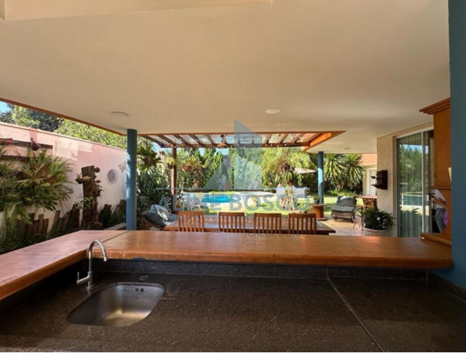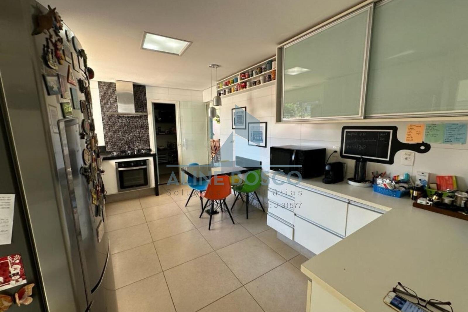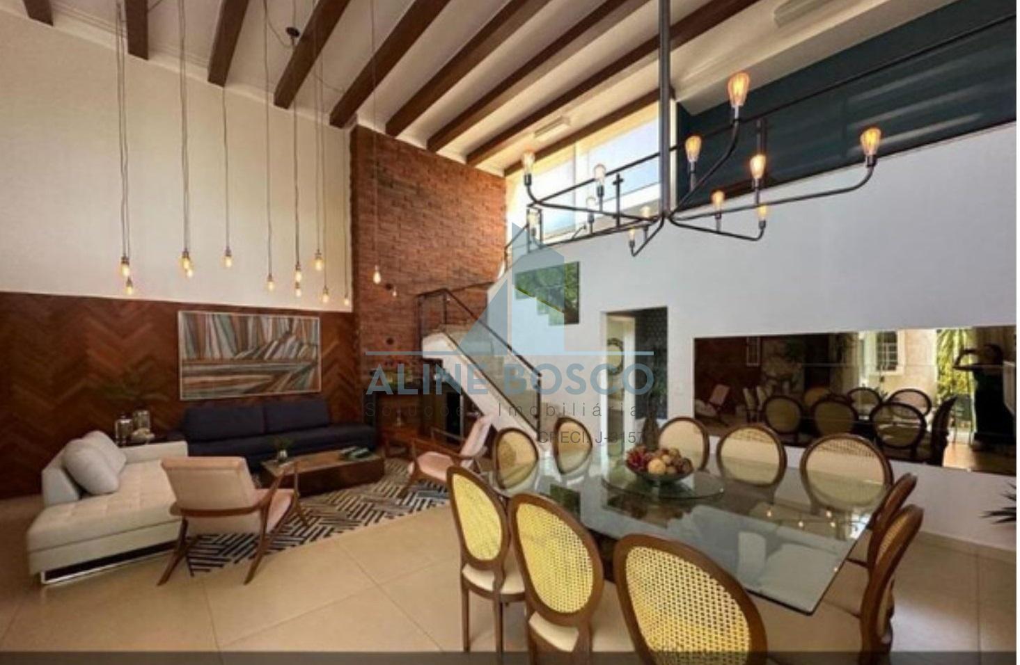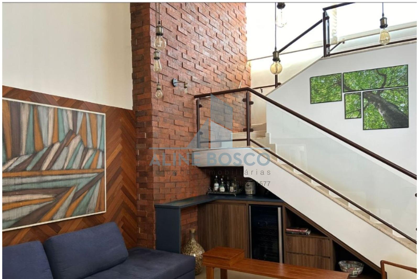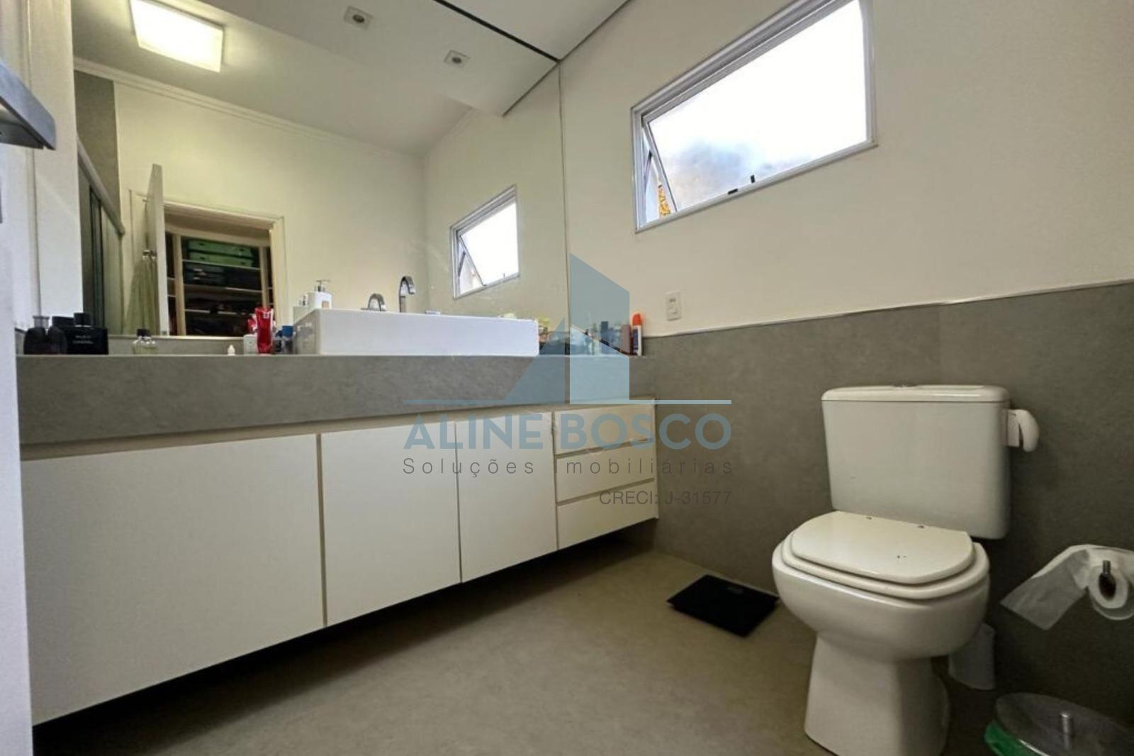 No andar inferior, a casa conta com hall de entrada, lavanderia, cozinha planejada, sala de TV, sala de jantar, lavabo, rouparia e 4 suítes, sendo 2 delas com armários embutidos.