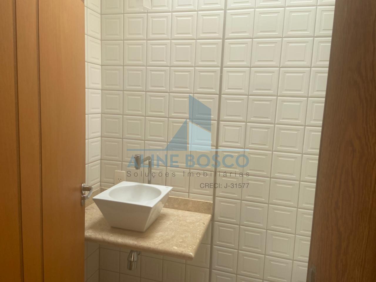 Piso Inferior: Sala 02 ambiente (TV/ Jantar), lavabo, escritório, banheiro social, área de lazer com varanda, forno