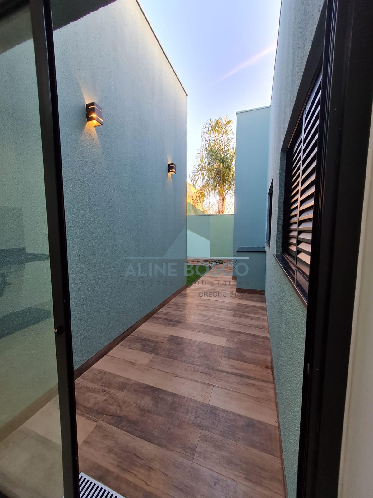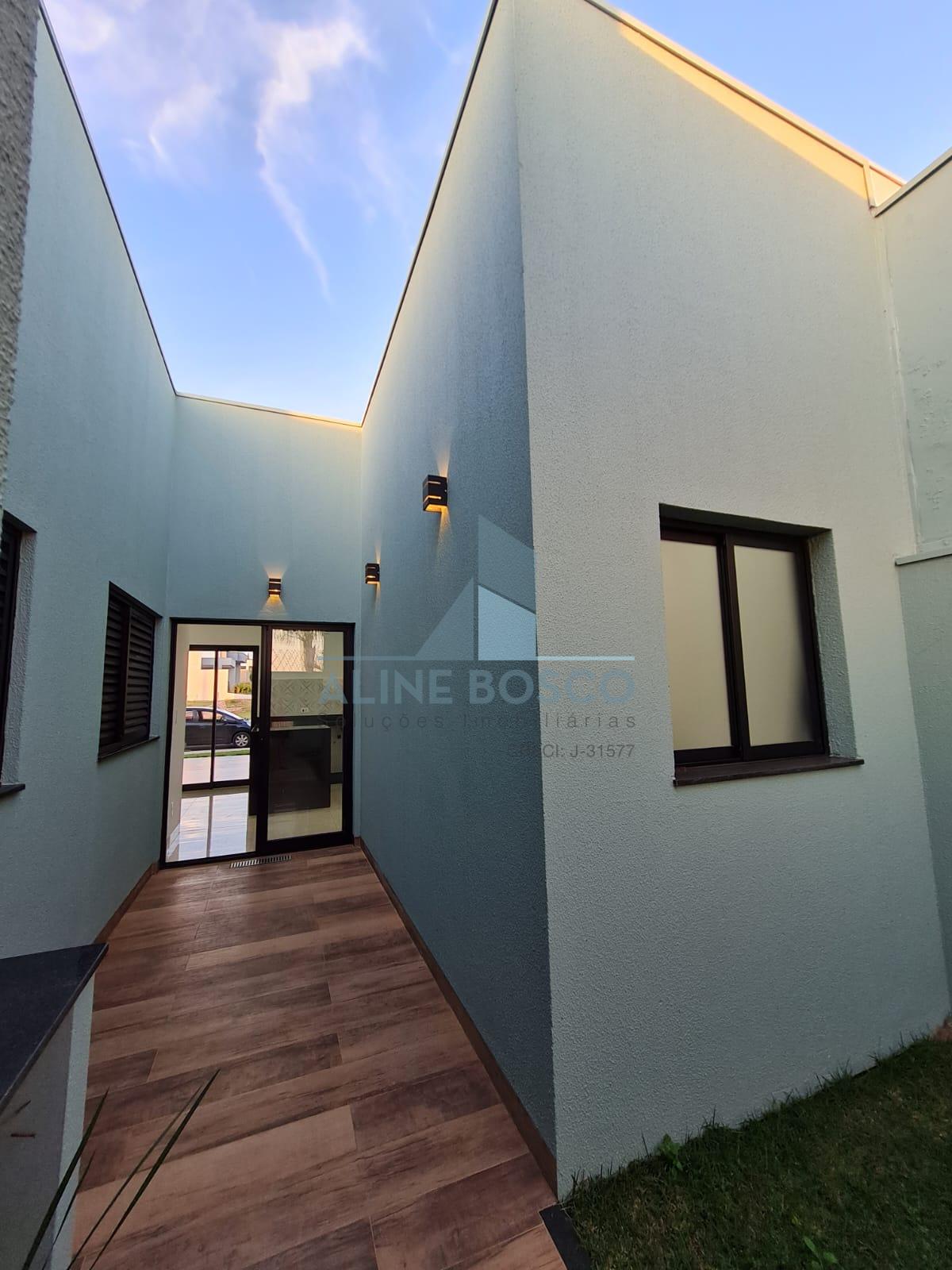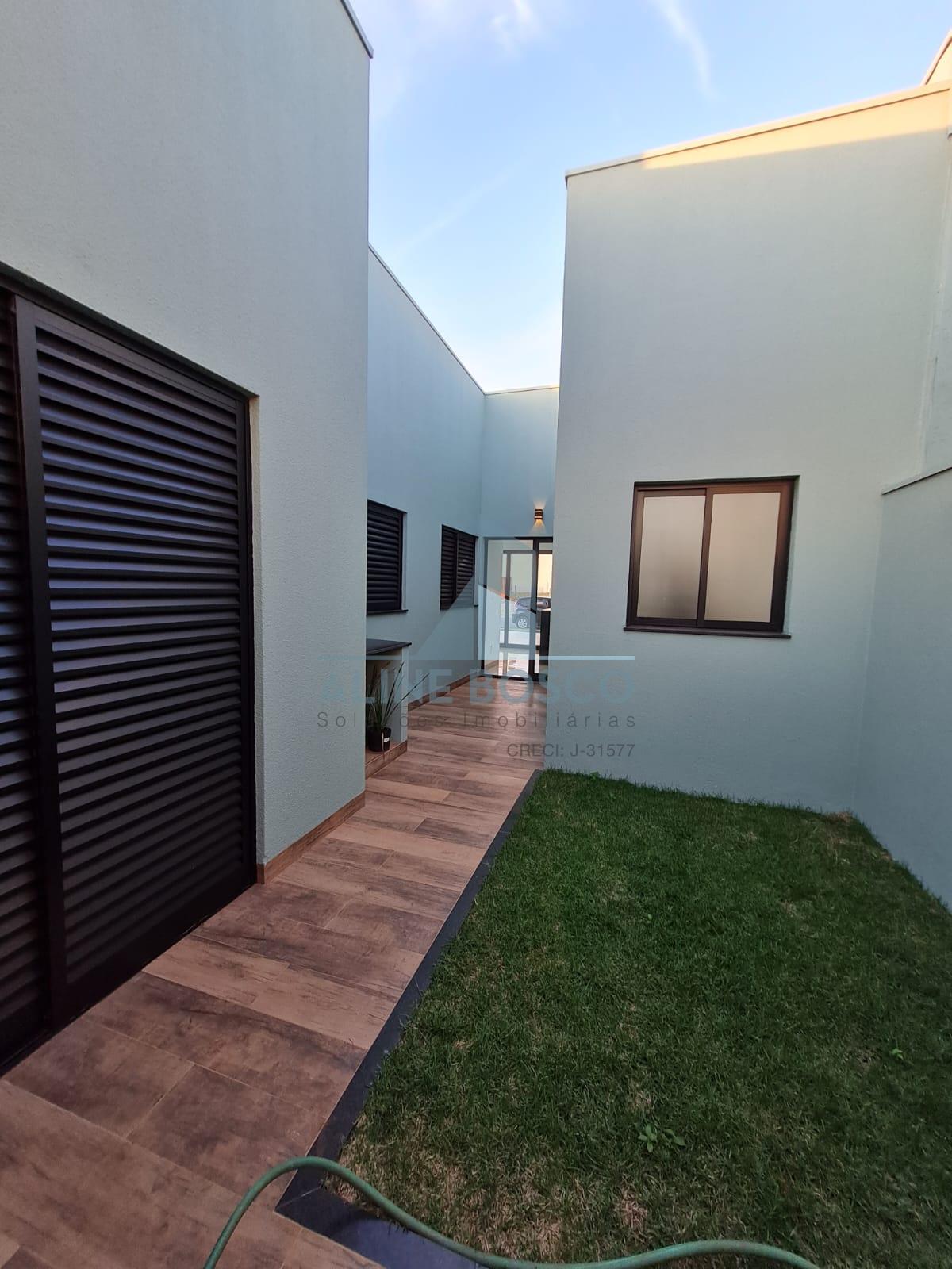 Casa térrea com 3 dormitórios sendo um suíte com closet sala ampla pé direito alto (4 metros), conceito aberto, integrada com cozinha gourmet lavanderia ampla jardim de inverno garagem coberta para 2 autos