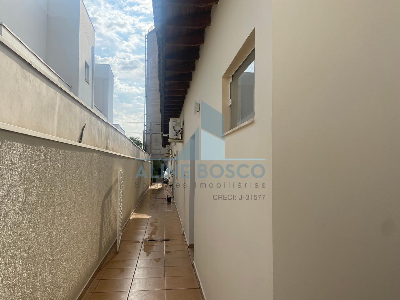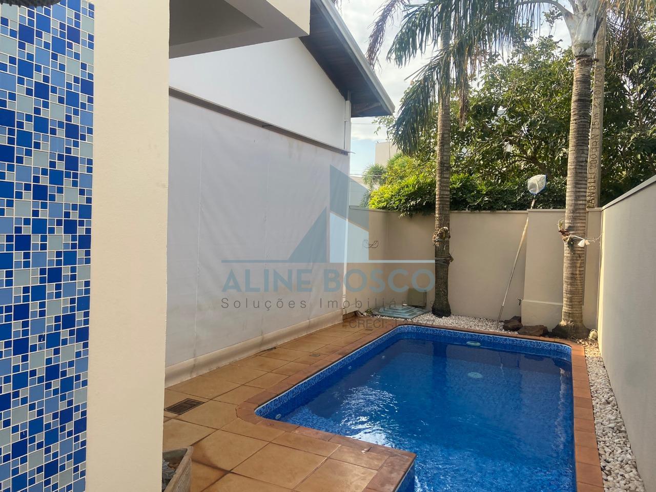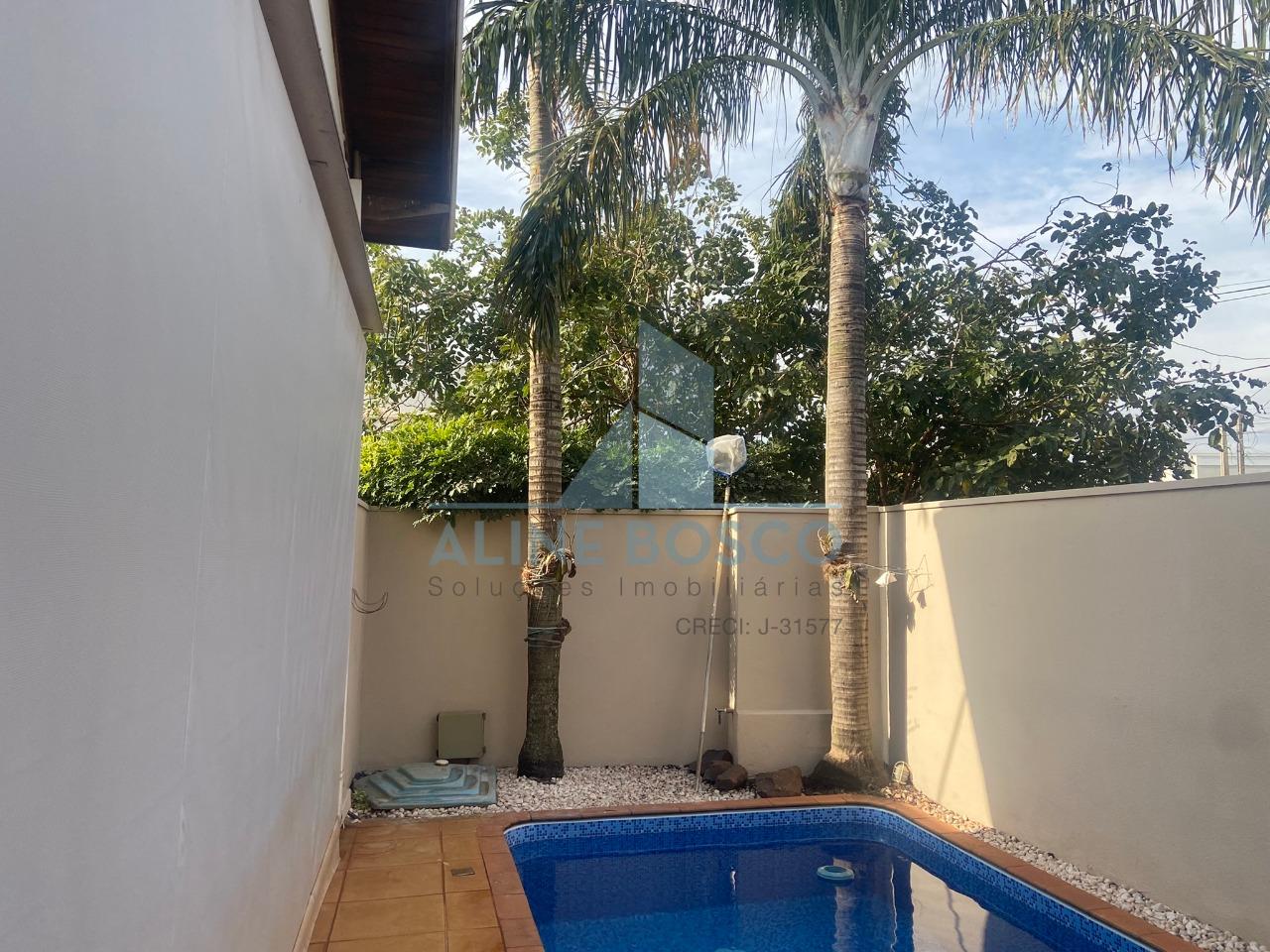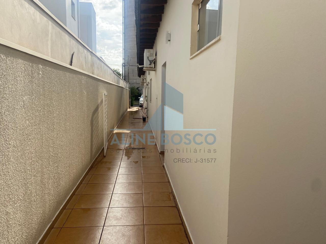 Casa térrea de esquina com 03 suítes, sendo 01 com closet e hidromassagem, sala para 02 ambientes (jantar/estar); sala de TV, lavabo, escritório, varanda gourmet com churrasqueira, banheiro social externo, piscina, área de serviço, 01 garagem descoberta e 01 coberta, portão eletrônico