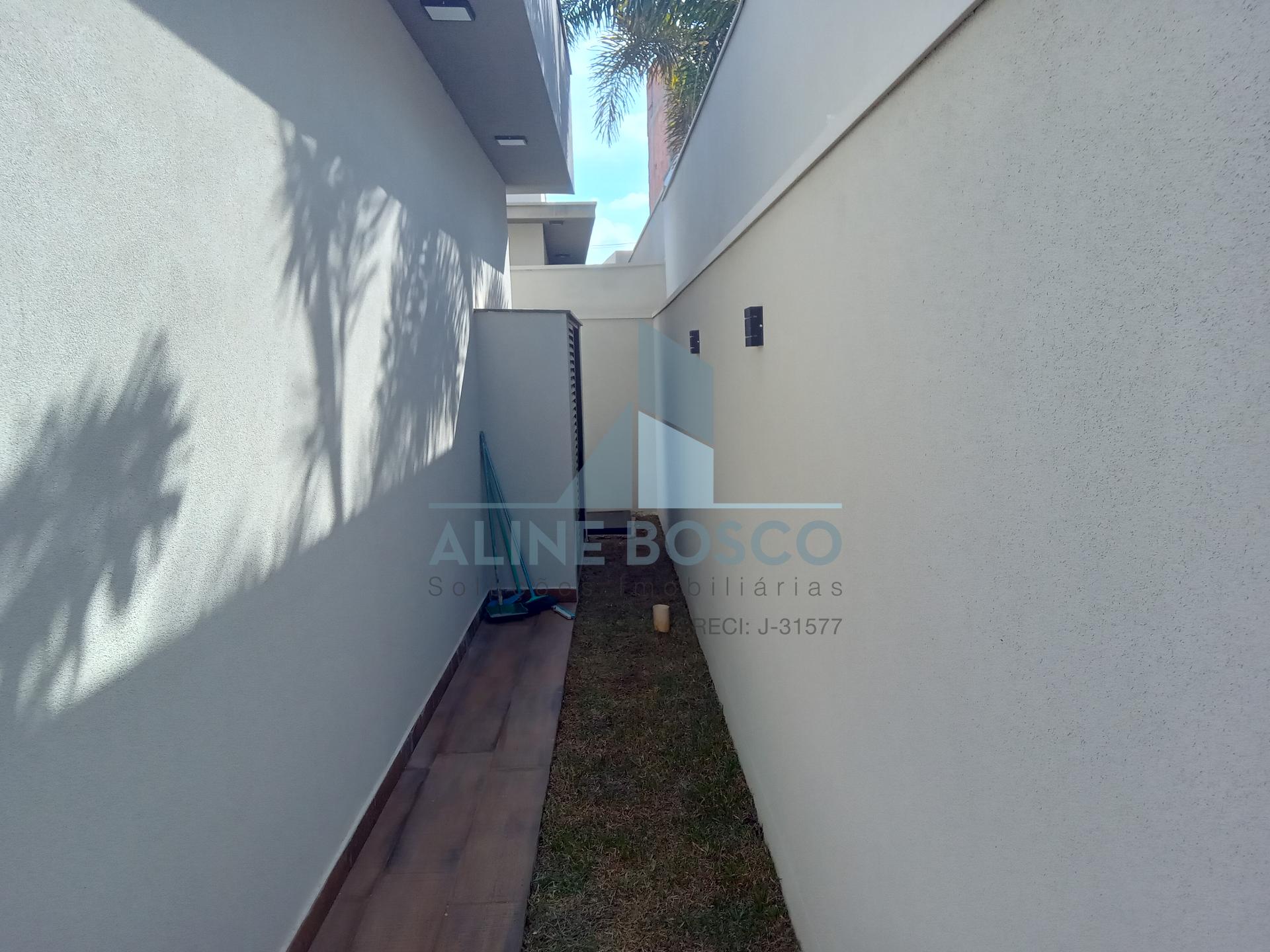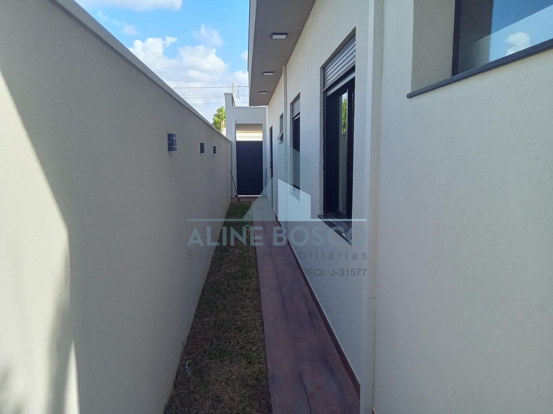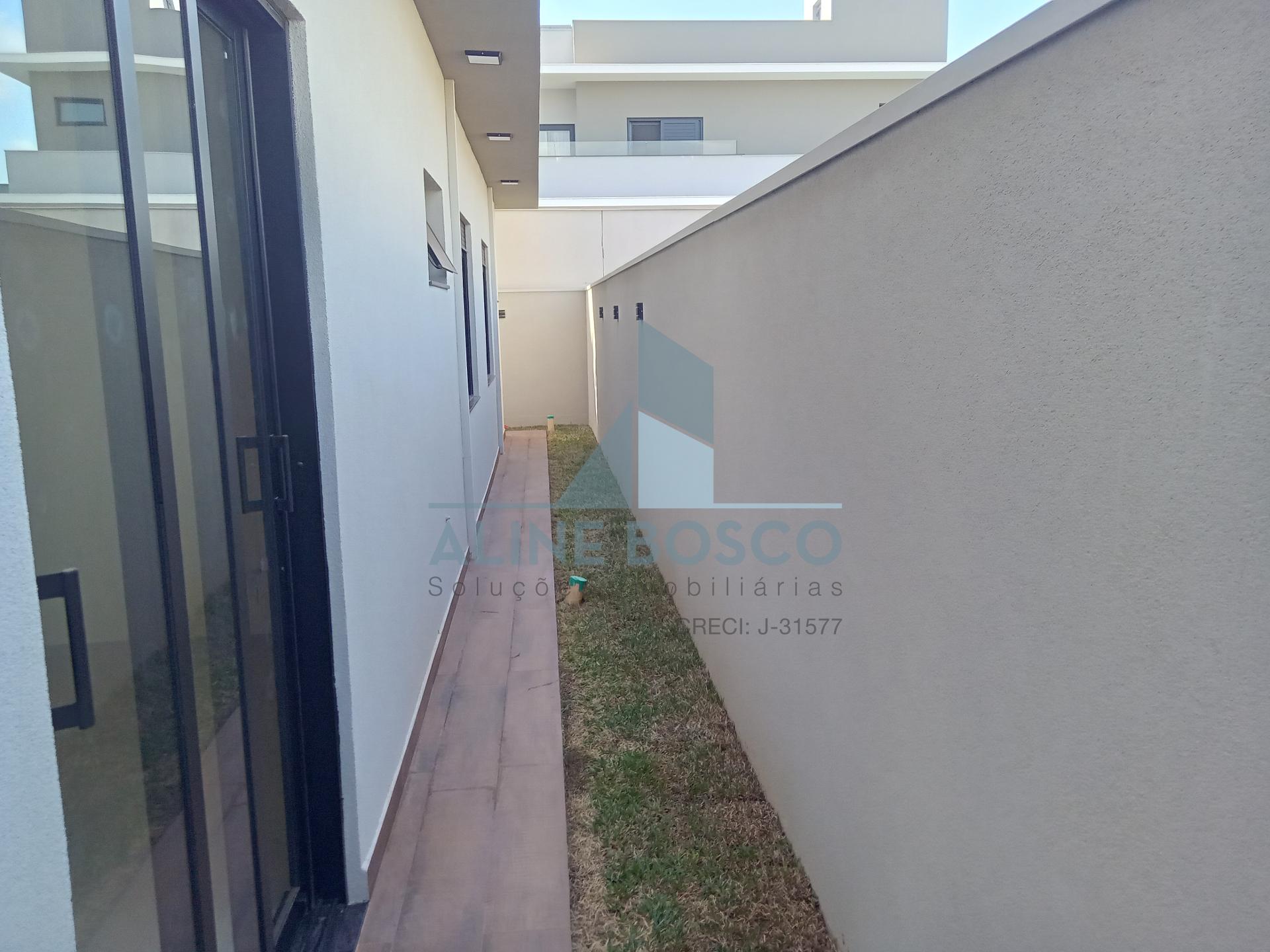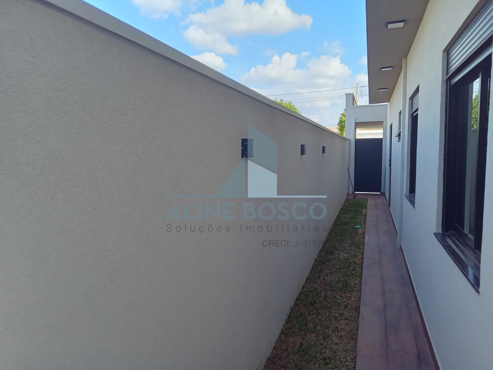 Casa térrea com 3 suítes completa de armários, escritório, sala ampla para 02 ambientes (jantar/estar), cozinha com planejados, área de serviço, garagem para 2 carros coberta, varanda gourmet com churrasqueira, Jacuzzi.