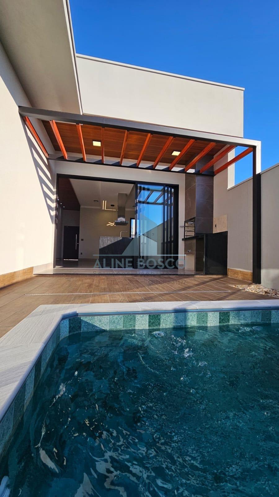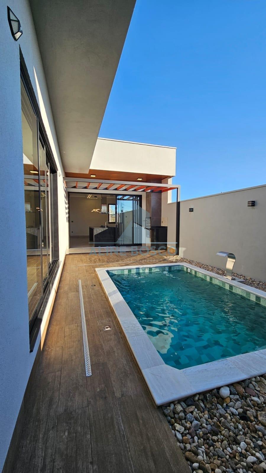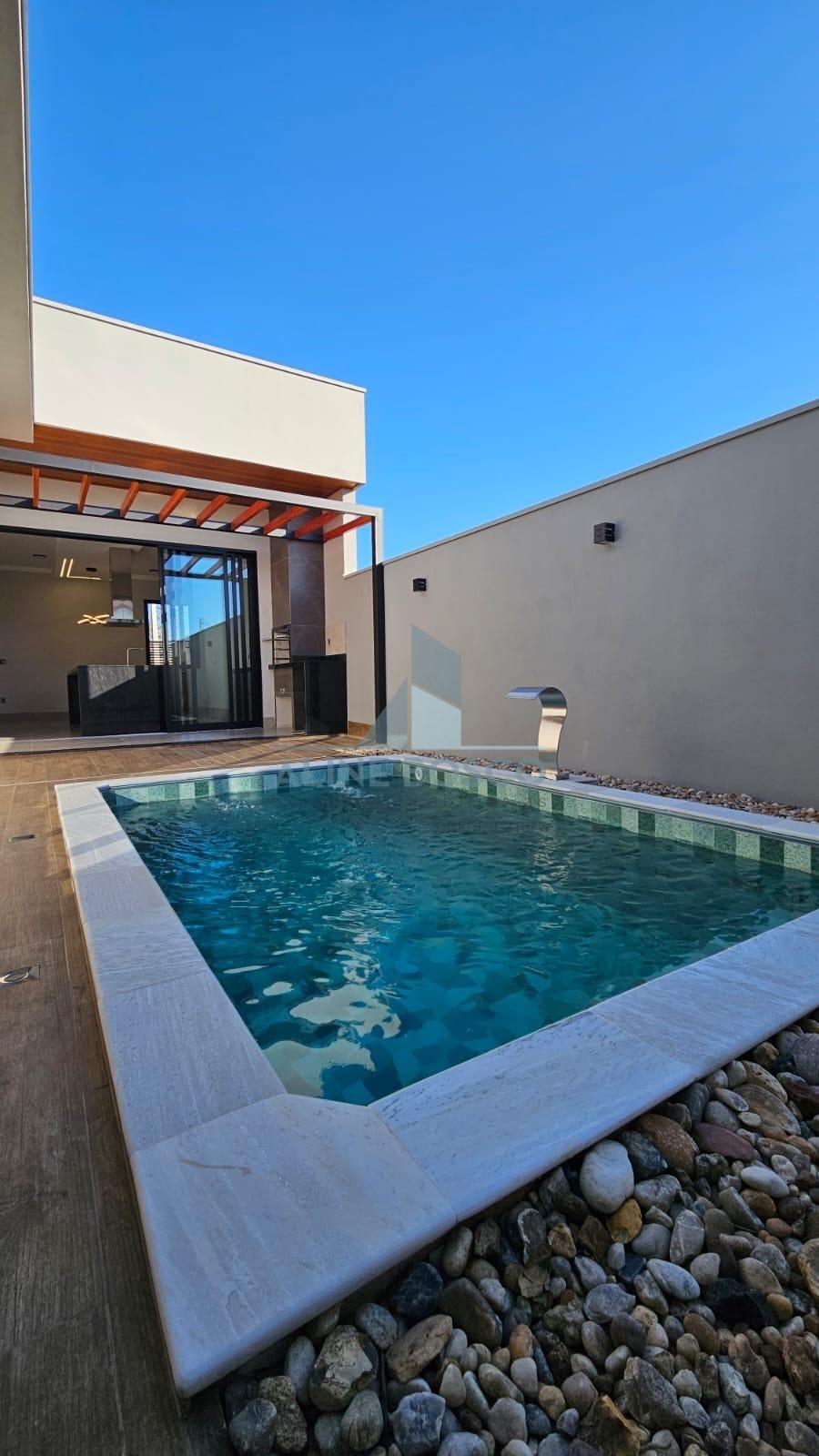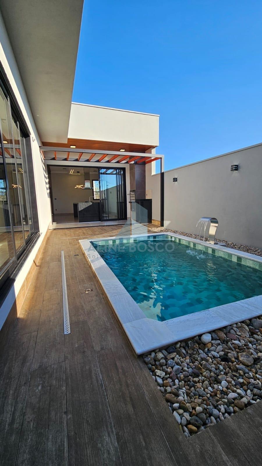 Casa com 3 quartos sendo 01 suítes, e closet, ampla cozinha/sala com ilha em granito natural, area gourmet com churrasqueira integrada, lavabo , lavanderia, placa de energia fotovoltaica , piscina privativa . Estuda permuta terreno condomínio.