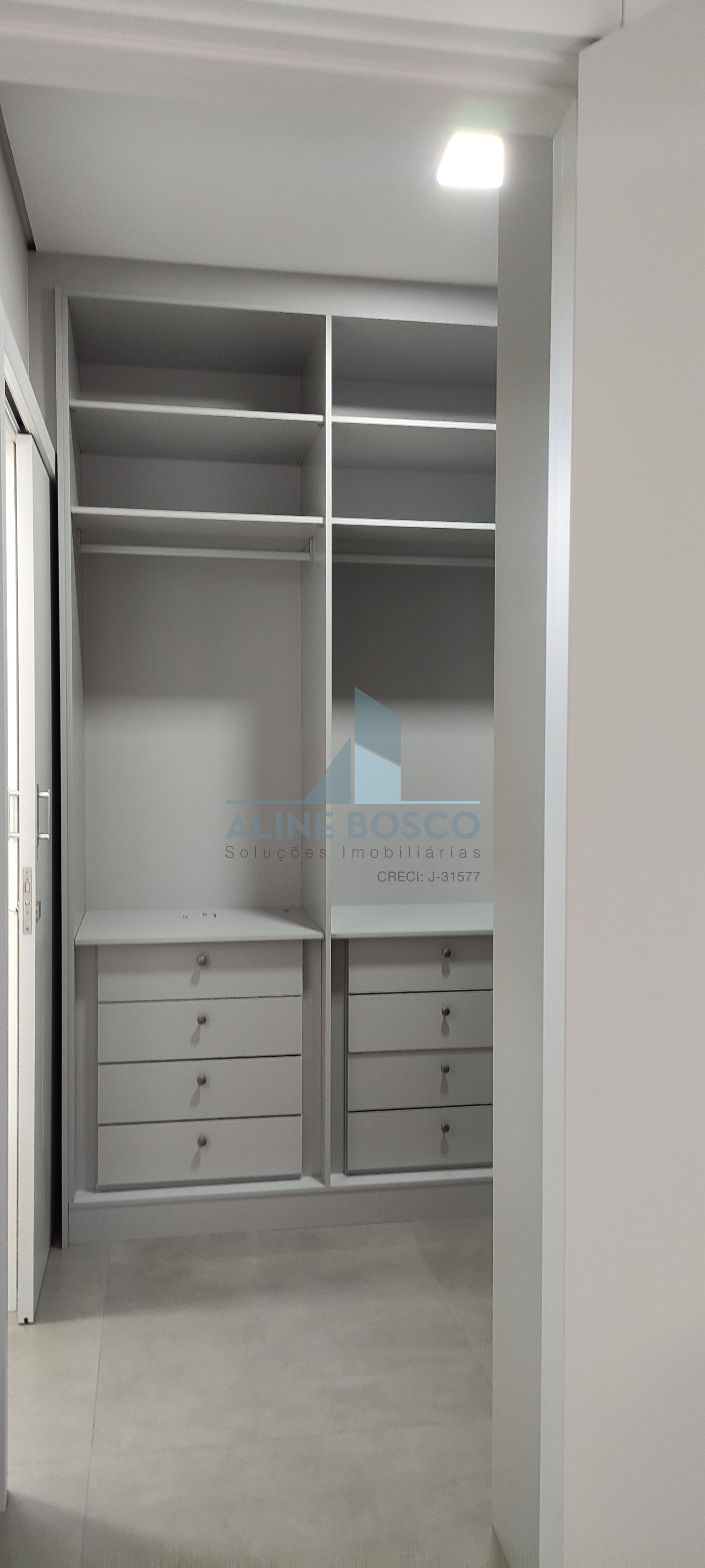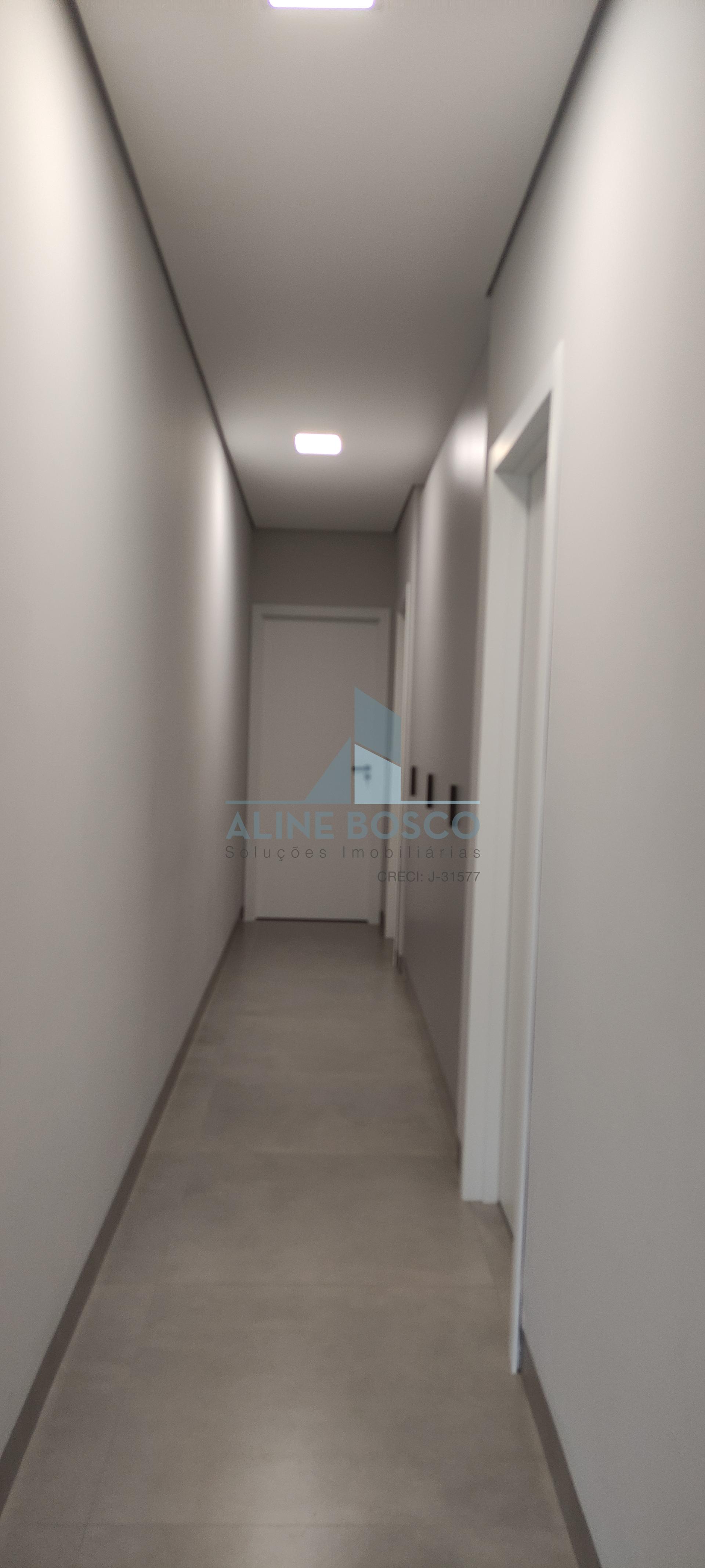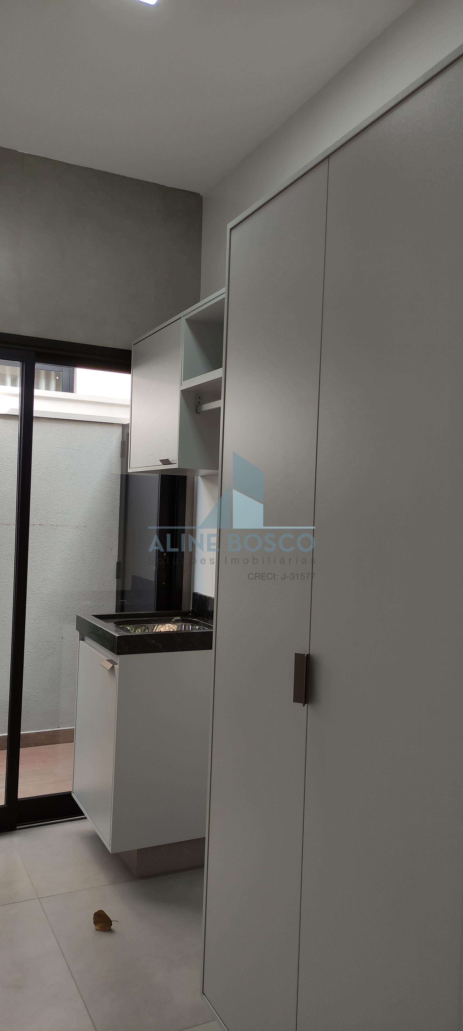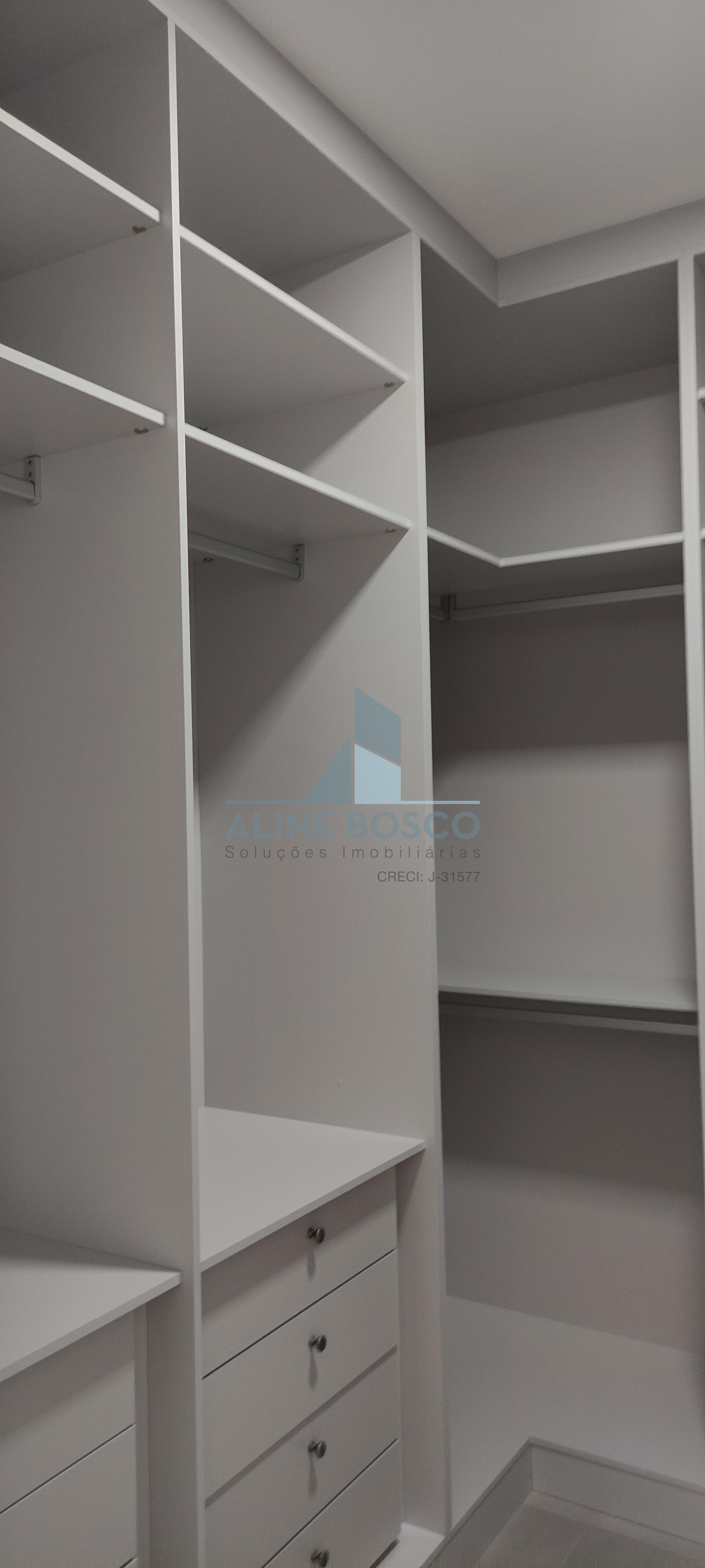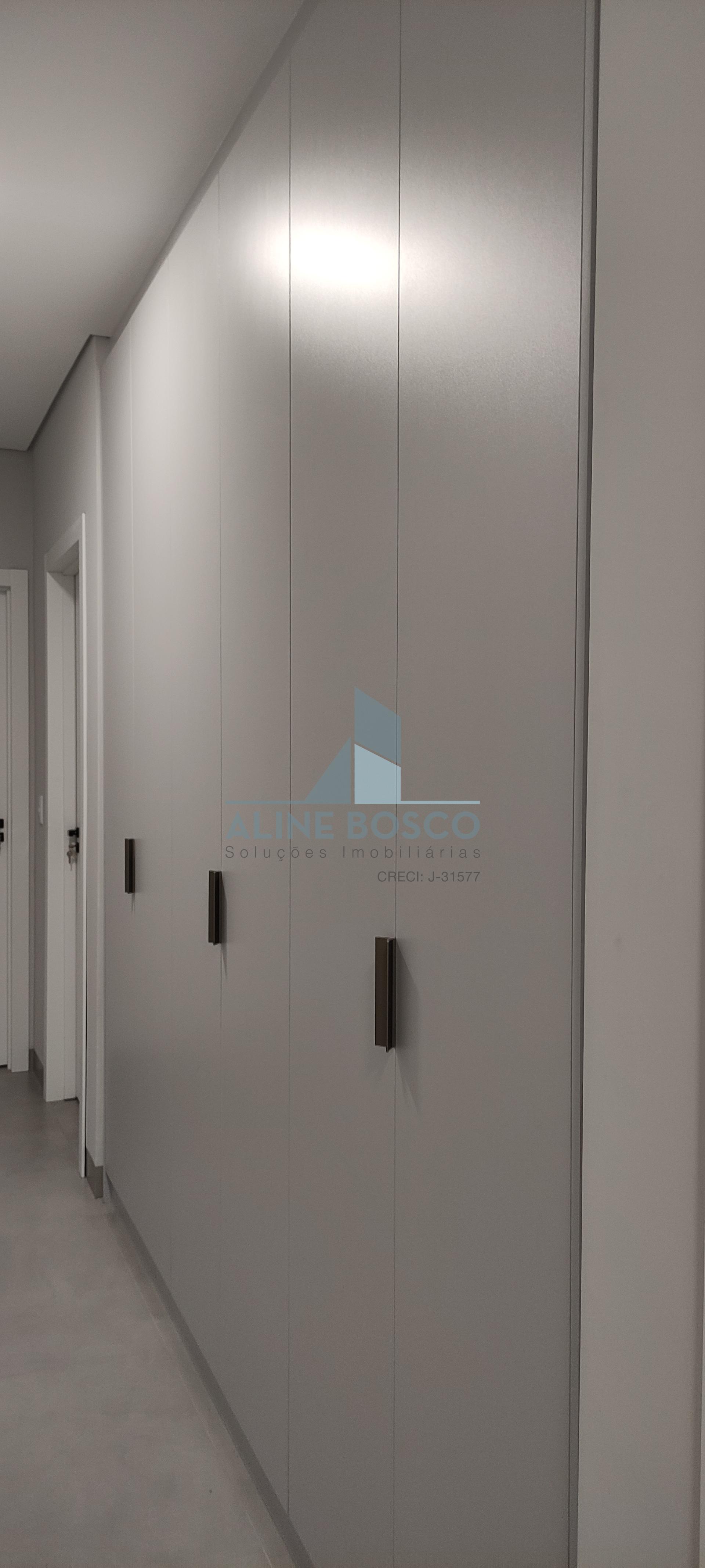 O projeto conta com 3 suítes, sendo uma master com closet, uma suite com armário e outra, sem armários, que pode ser adaptada para escritório. Corredor das suites com amplo armário para roupeiro. Banheiros das suites com armários, espelho, box, torneiras mono comando, com acabamentos de alto padrão. Sala de estar/TV com porta retrátil para isolamento e privacidade. Cozinha completa de armários, com ilha com cooktop, integrada á sala de jantar e área gourmet com churrasqueira e armários. Lavanderia com armários e tanque de inox
