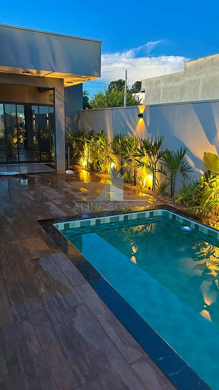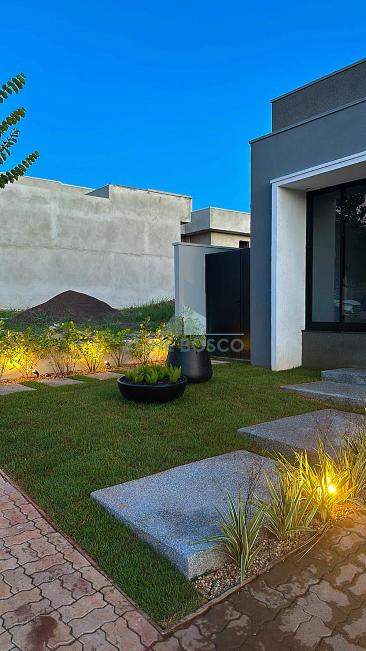 Projeto completo com iluminação, paisagismo, placas de energia fotovoltaica com geração de até 560 W/mês, preparação para ar condicionado, infraestrutura para boiler e esquadrias em alumínio preto.